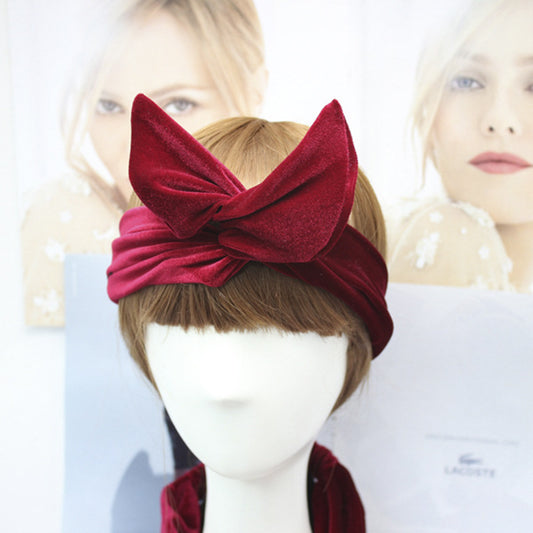 A140韓版時尚髮帶潮流金絲絨布藝學院風兔耳朵女髮飾外出百搭髮箍Velvet