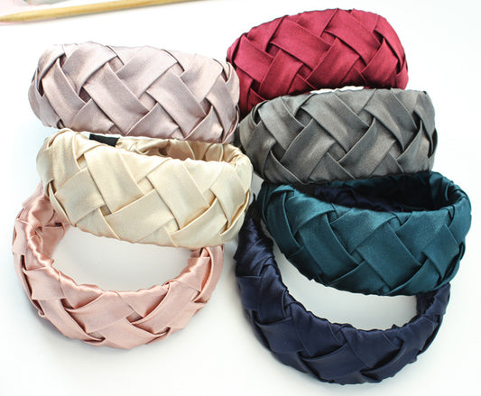 A900新款韓國髮飾 純色編織布藝寬邊髮箍 韓版褶皺格子氣質頭箍hairhoopbraid