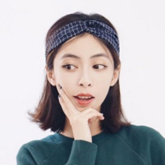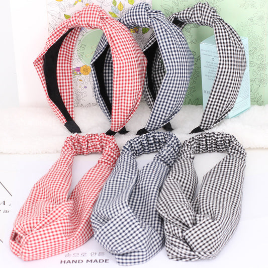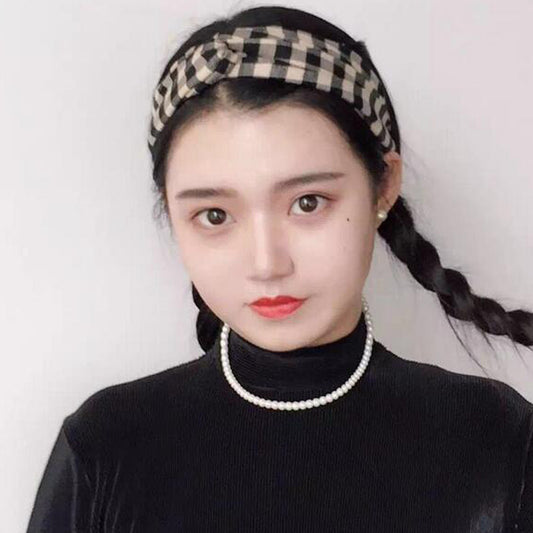B316韓國頭飾林小宅同款格子髮帶簡約寬邊交叉洗臉頭帶松緊束髮箍Plaid