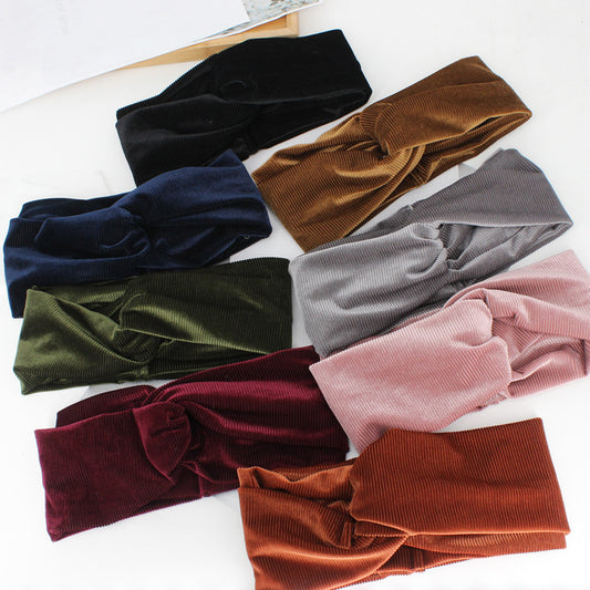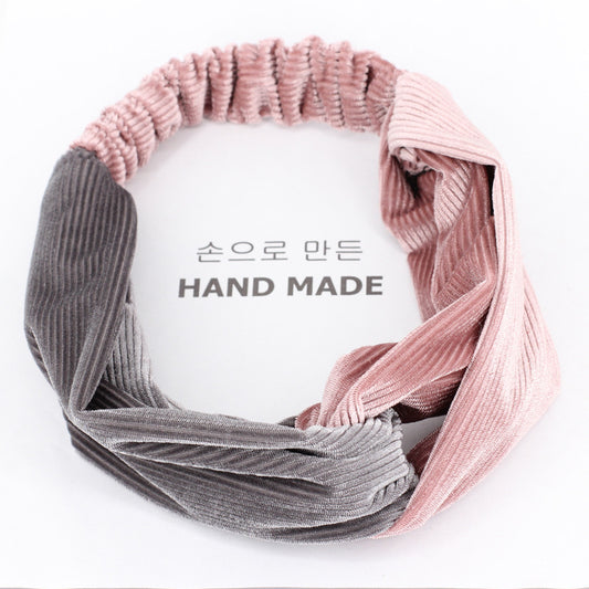 B572韓國秋冬純色牙簽條紋金絲絨交叉髮帶松緊彈力頭飾髮箍廠家Velvet