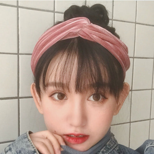 B538韓國進口歐美復古寬邊絲絨交叉髮帶洋氣百搭多色髮箍髮帶髮飾Velvet
