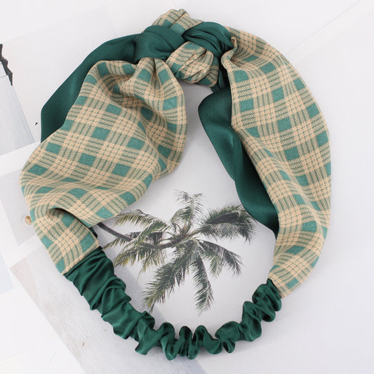 B628髮箍韓國頭飾格子包邊森女系洗臉寬邊韓版打結頭箍超仙簡約Plaid