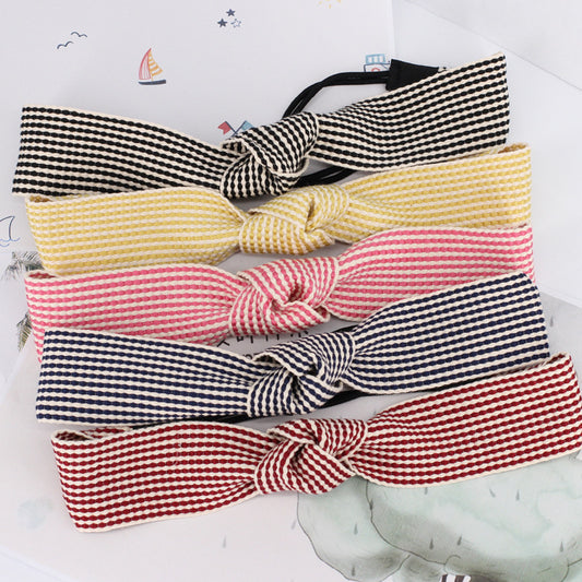 B737韓版時尚髮箍學院風格子條紋交叉松緊布藝髮帶甜美清新女頭巾Plaid