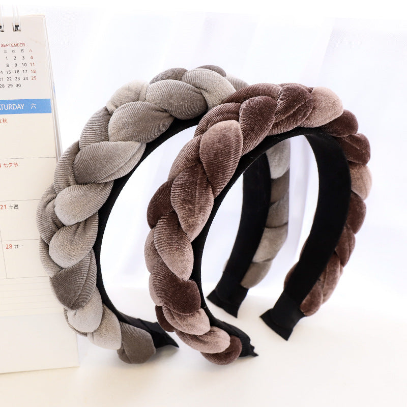 F187跨境歐美風新品髮箍民族編織辮子頭飾秋冬季絨布頭箍少女髮卡Velvet