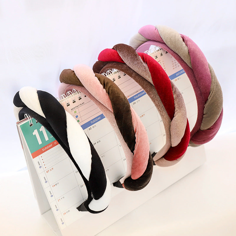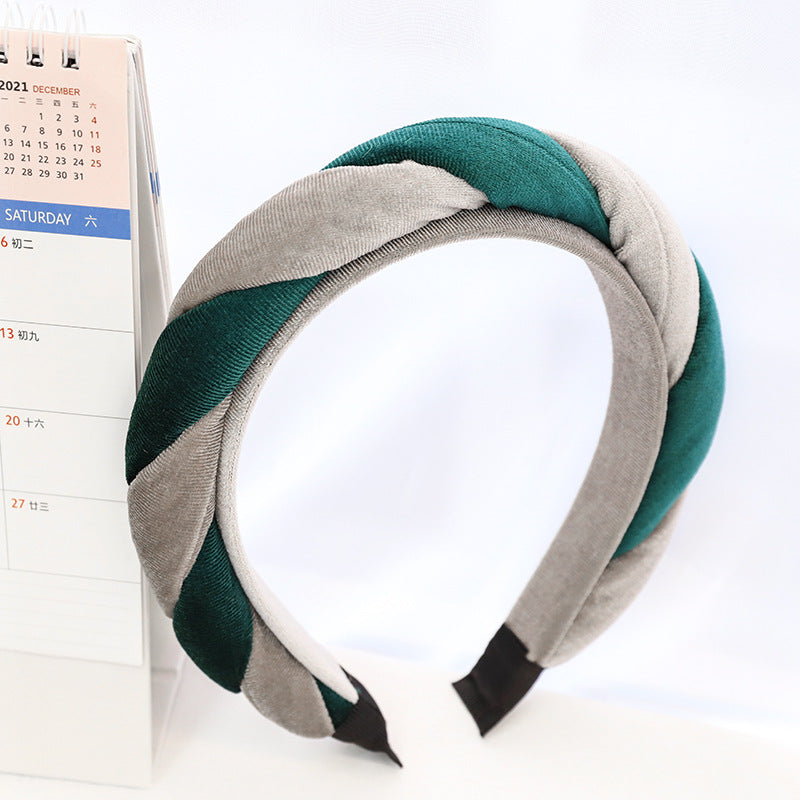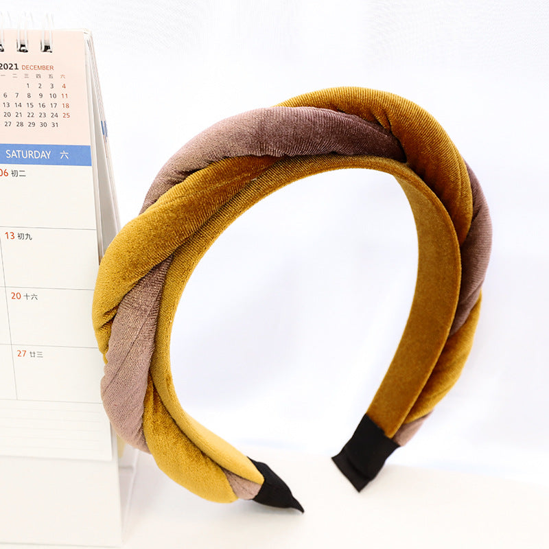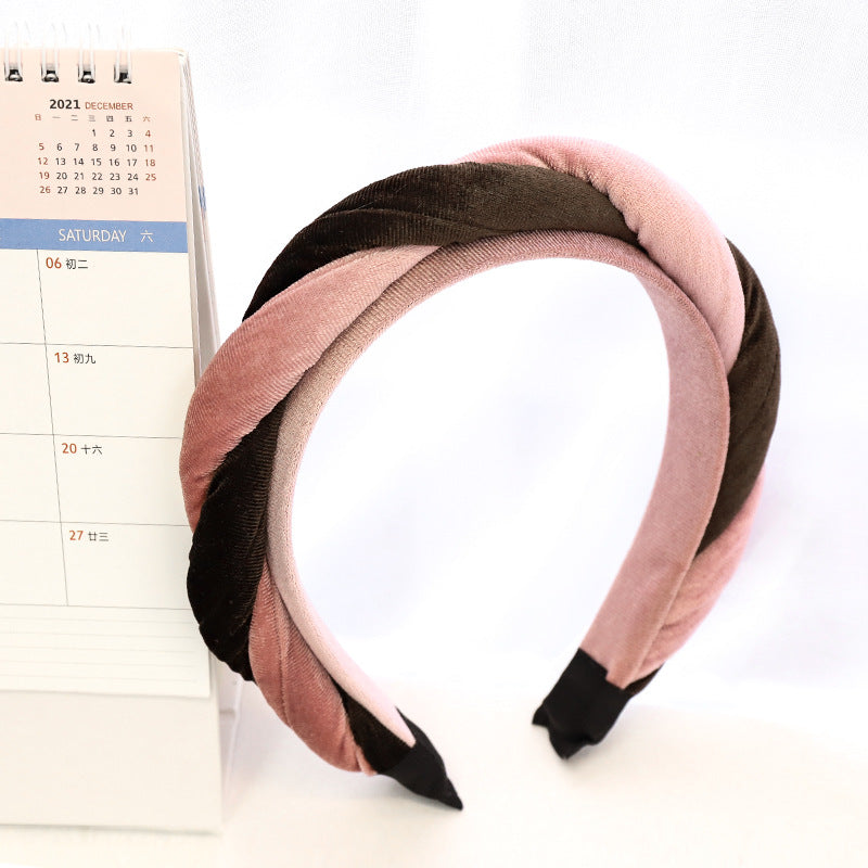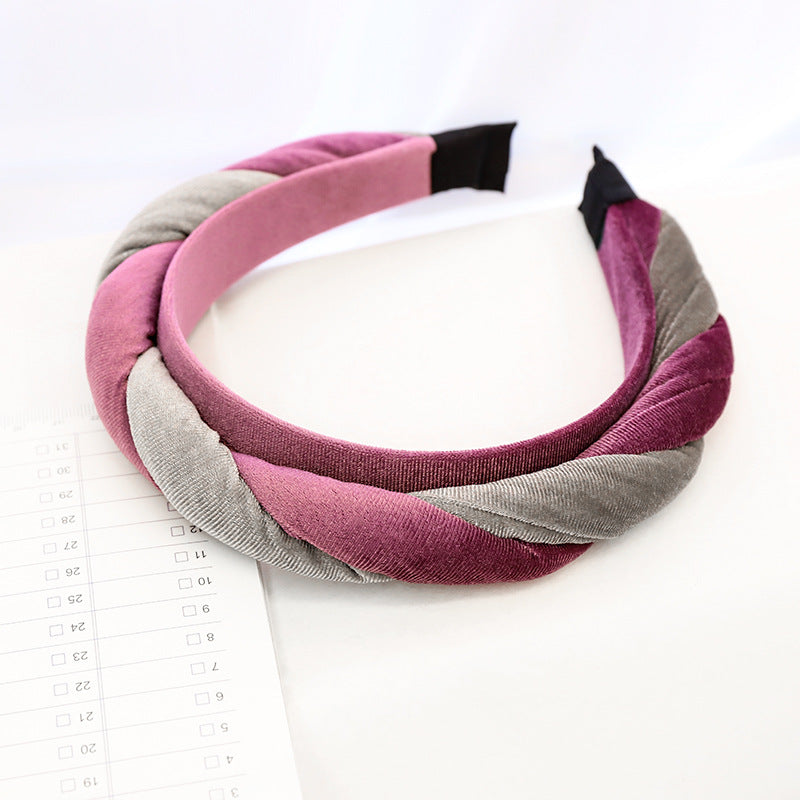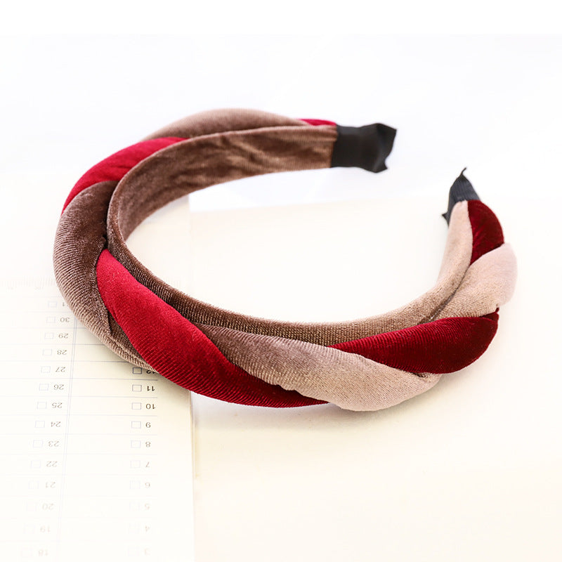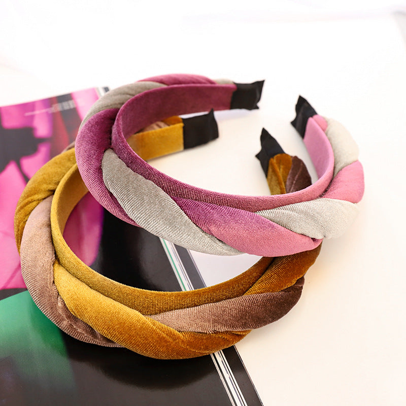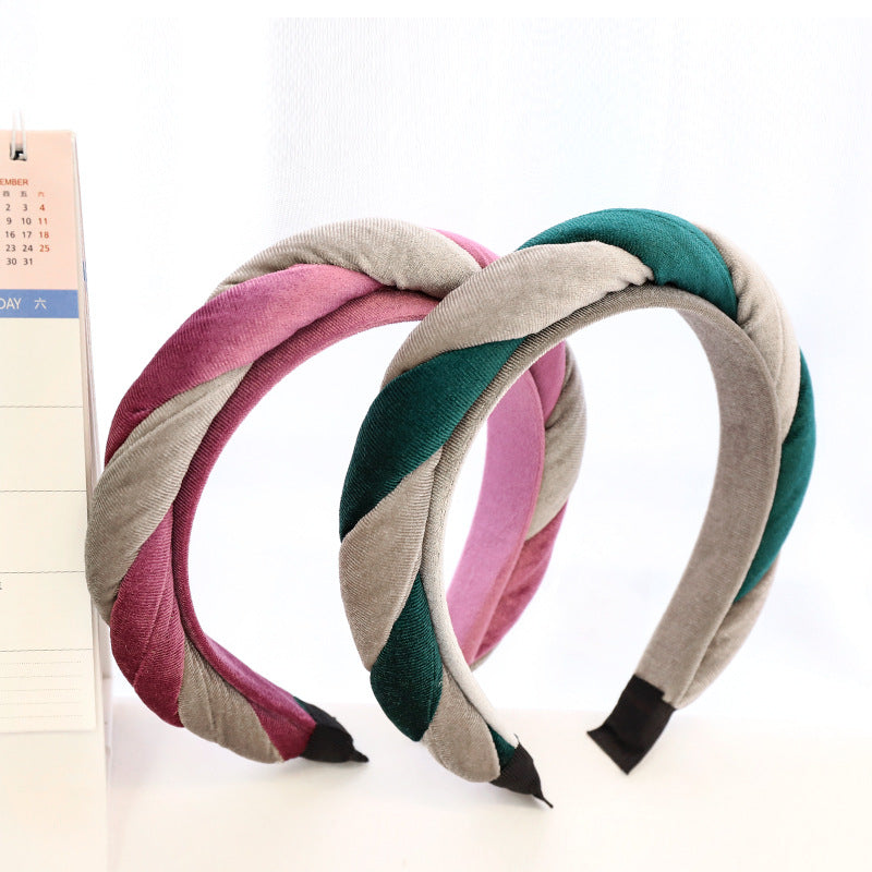 F193跨境秋冬絲絨髮箍雙色拼接纏繞辮子頭箍網紅同款新品女士髮飾Velvet