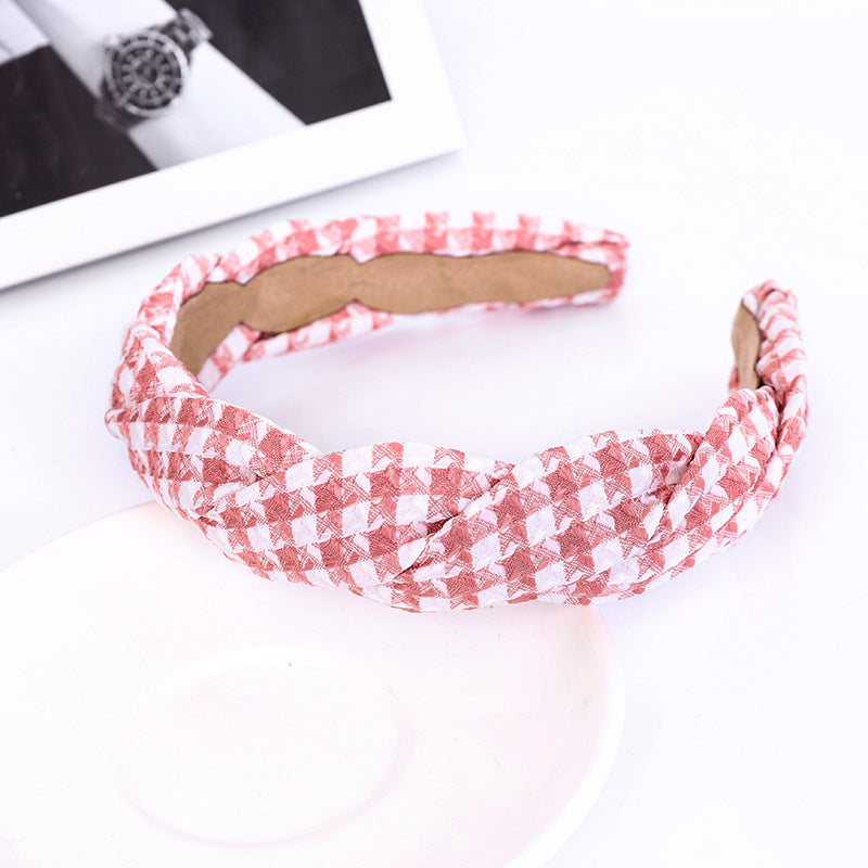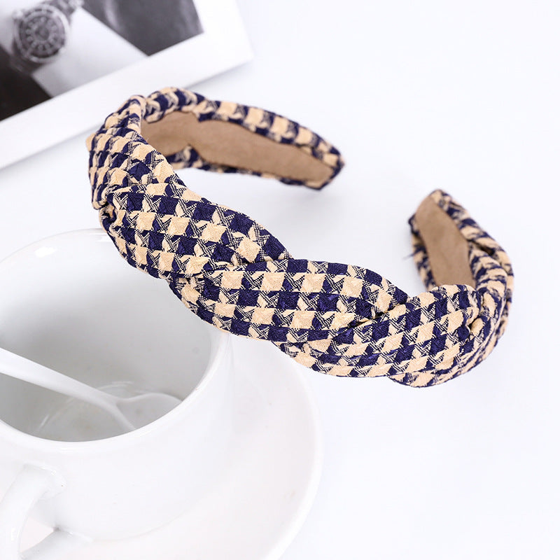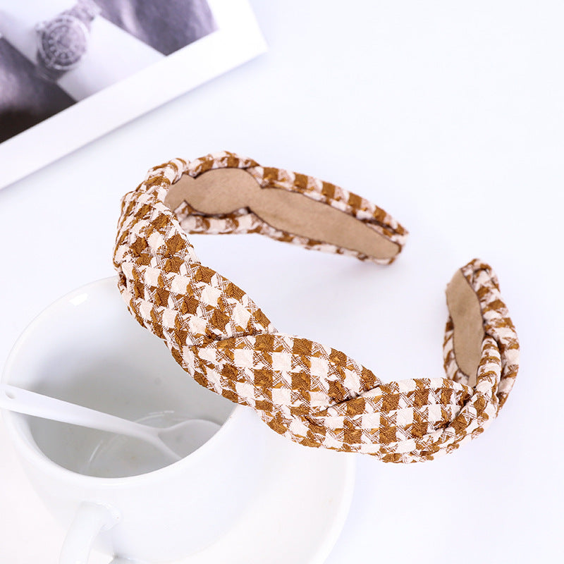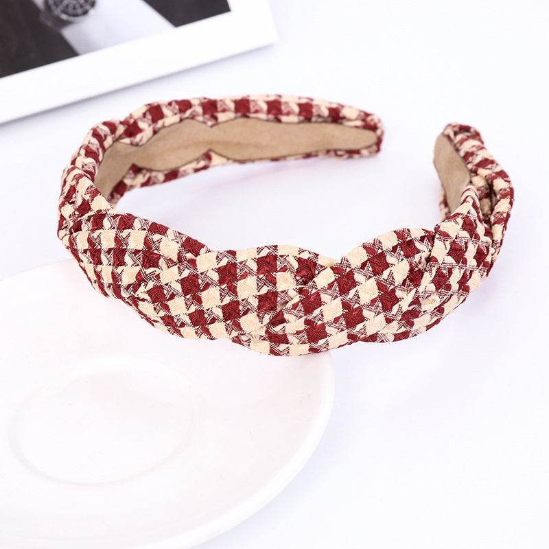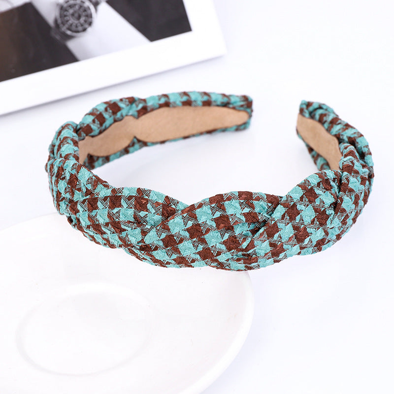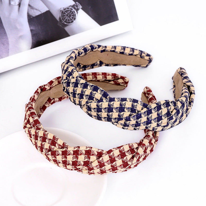 F282時尚秋冬新品髮箍民族格子布藝纏繞頭飾髮卡女士外出頭箍髮捆Plaid