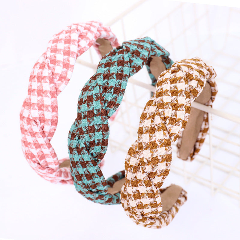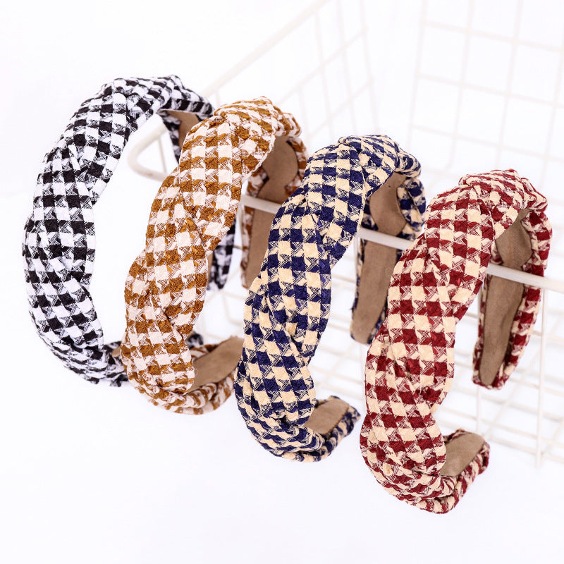品名:F282時尚秋冬新品髮箍民族格子布藝纏繞頭飾髮卡女士外出頭箍髮捆Plaid