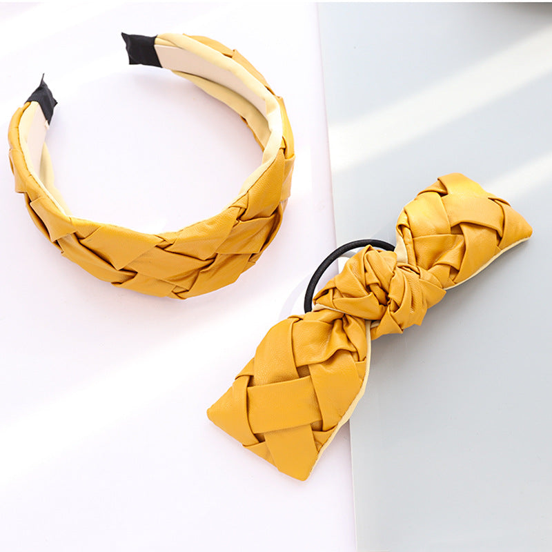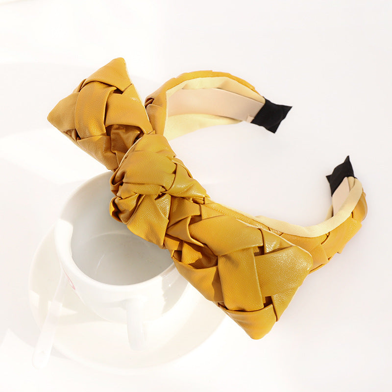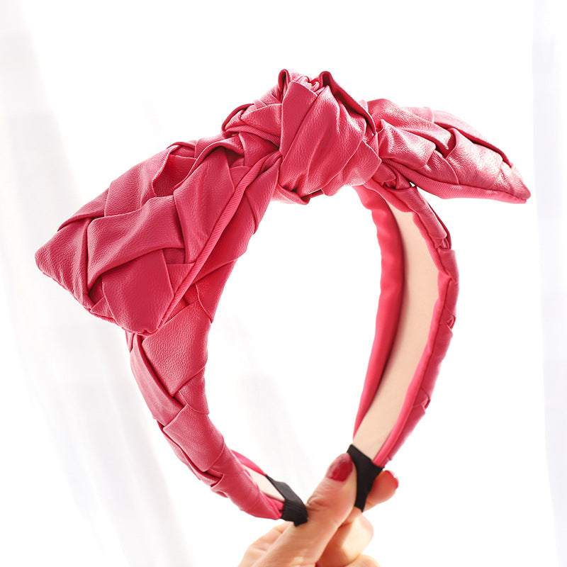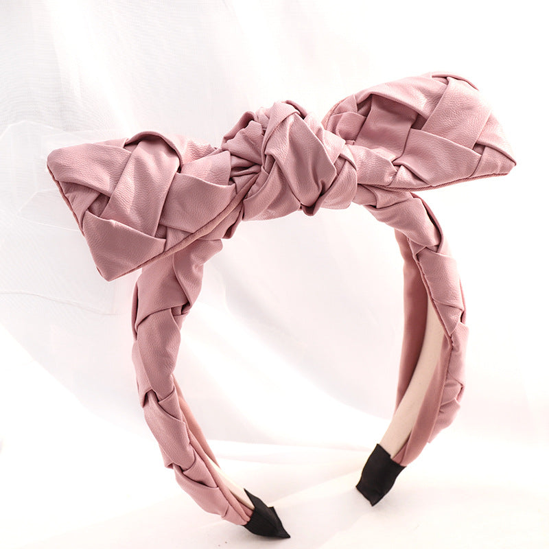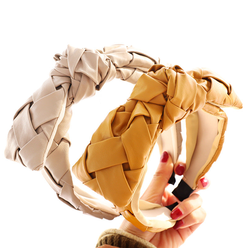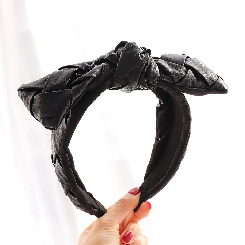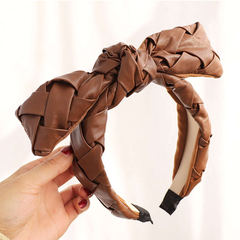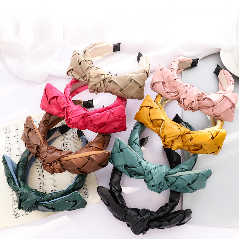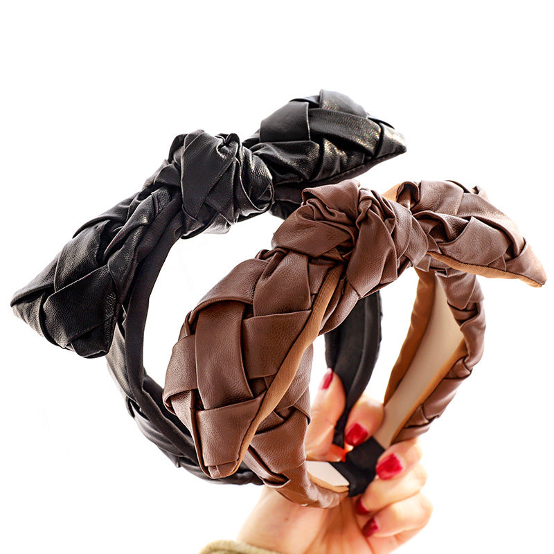 F331跨境髮箍批發PU皮質頭箍甜美可愛皮革髮飾女士壓髮洗臉髮捆hairhoopbraid