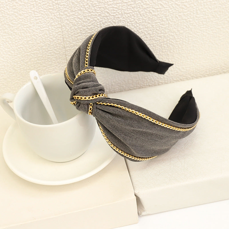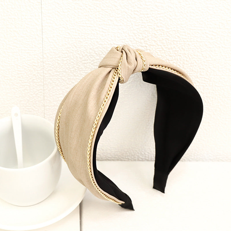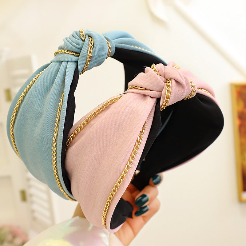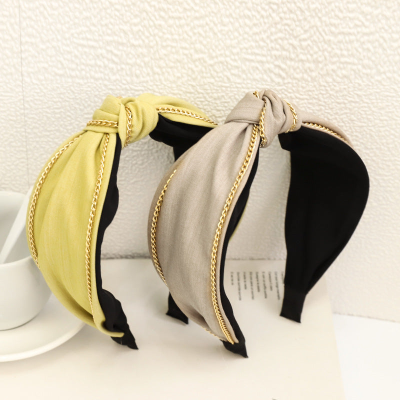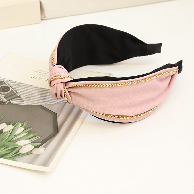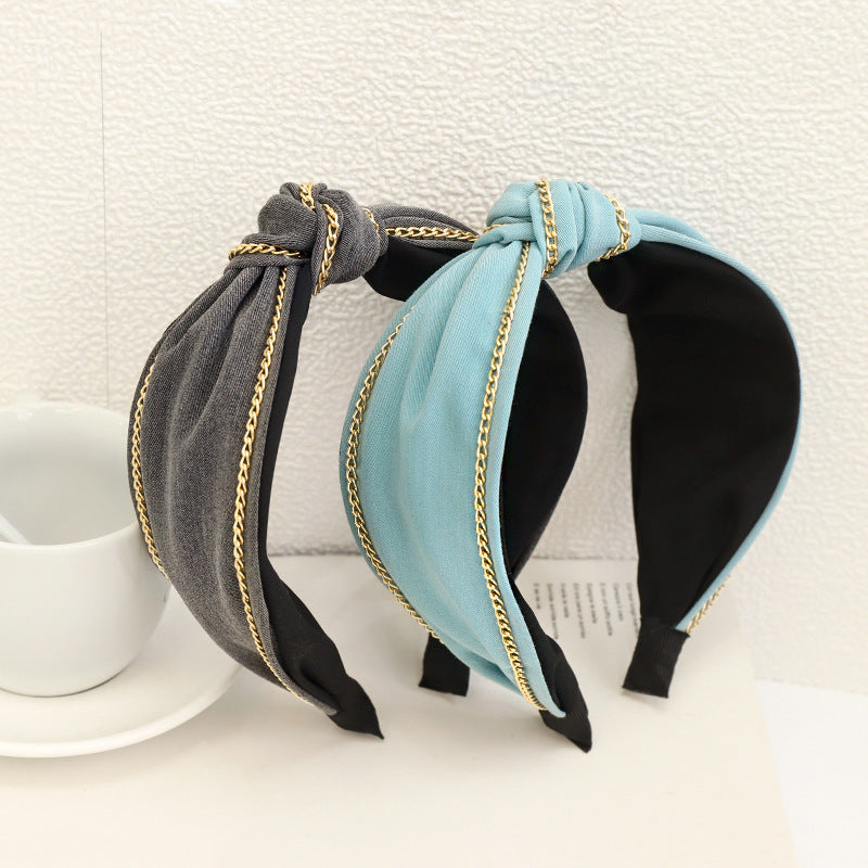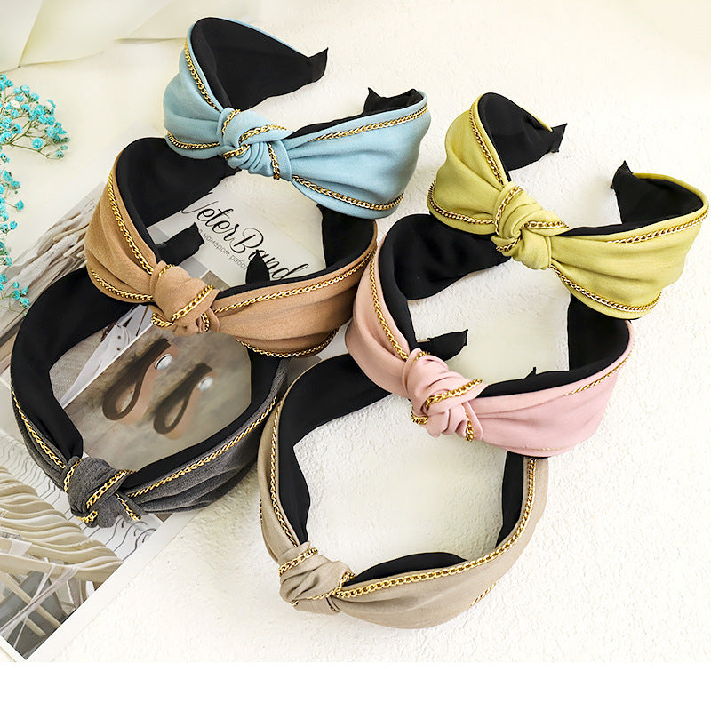 F366韩版时尚新品发箍纯色中间打结链条头饰发卡女士外出发饰头箍hh202103_01