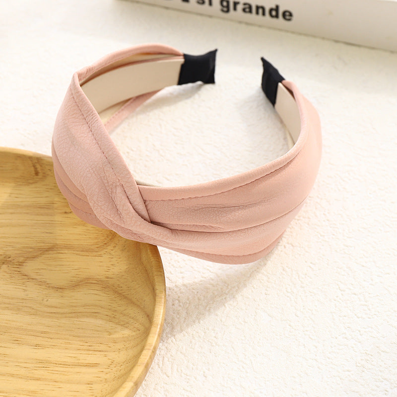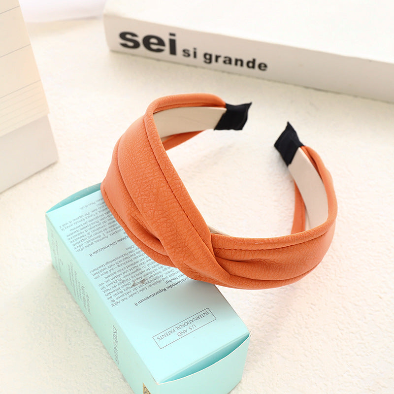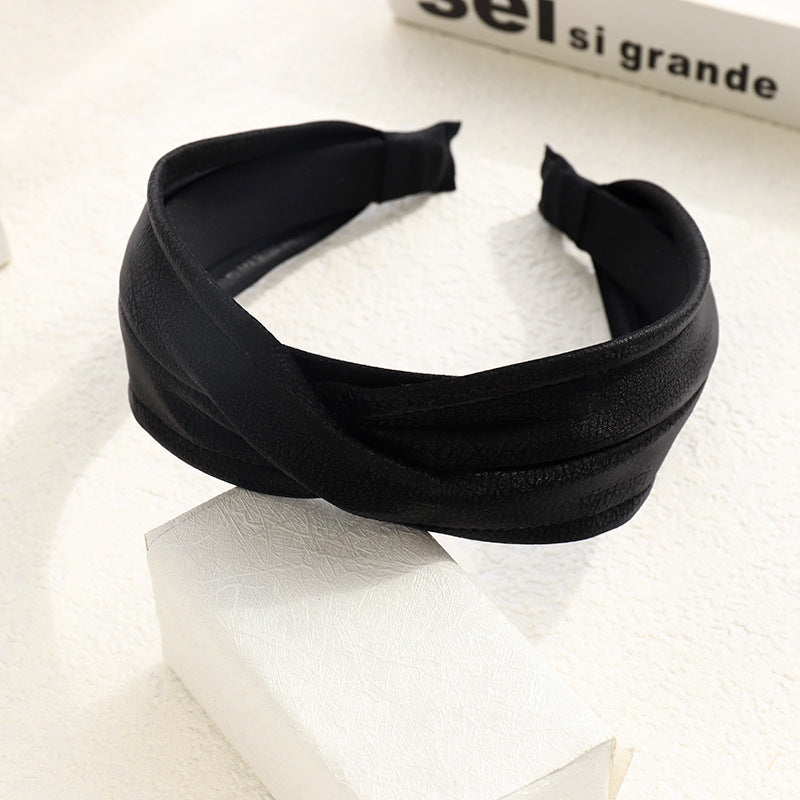 F373跨境UP皮质时尚宽边交叉皮革头箍发饰 简约洗脸运动发捆发箍hh202103_01