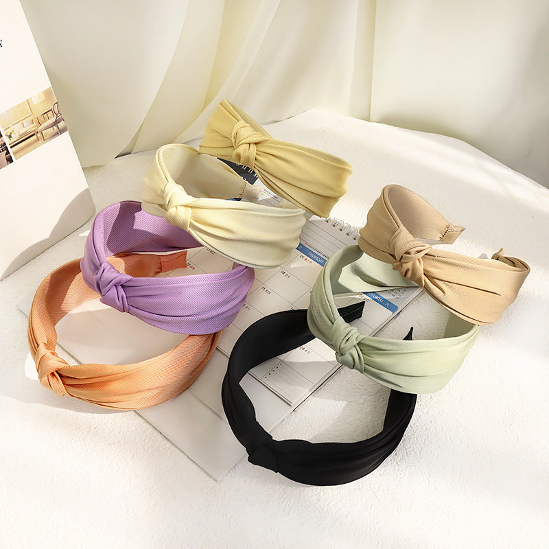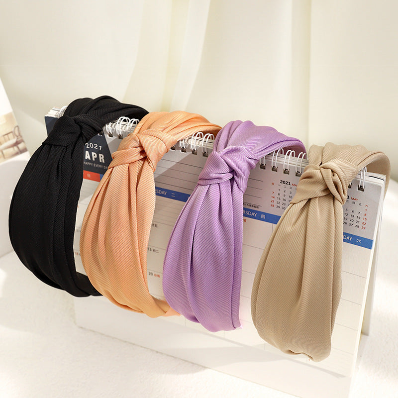 F376新款韩版时尚简约纯色打结头饰发箍 网红少女外出压发发捆hh202103_01