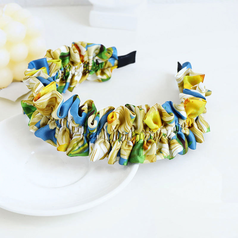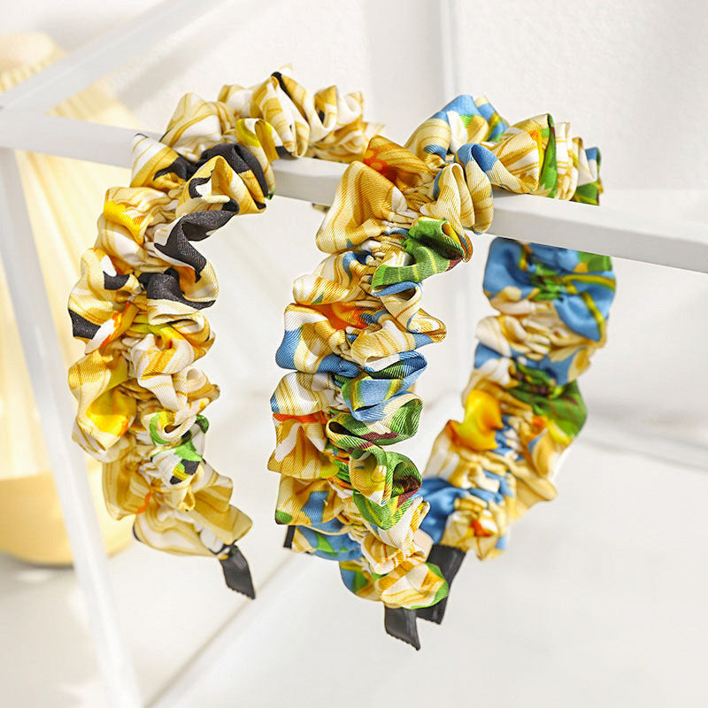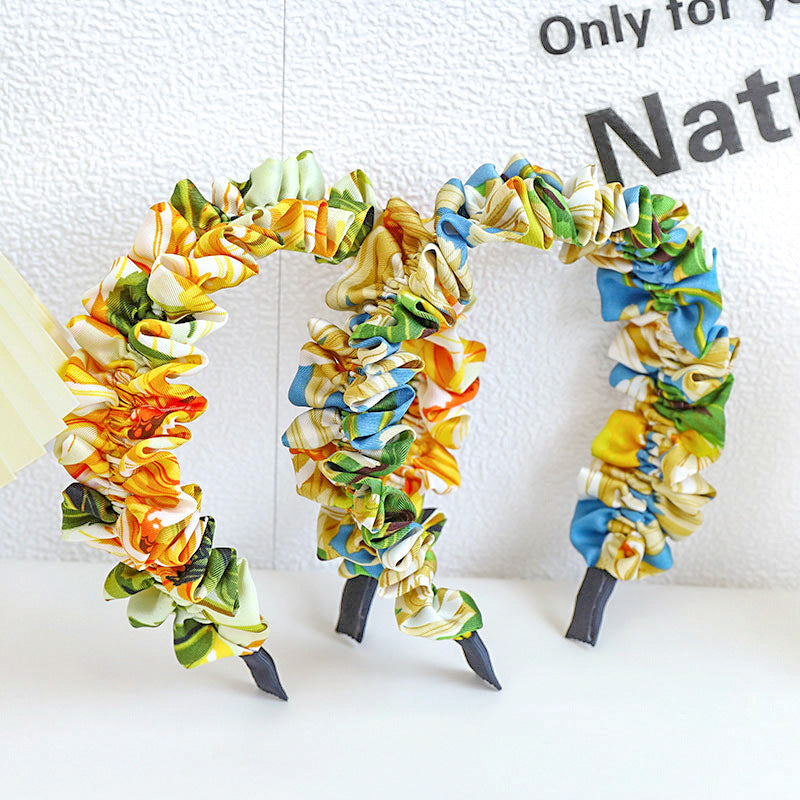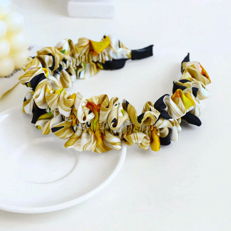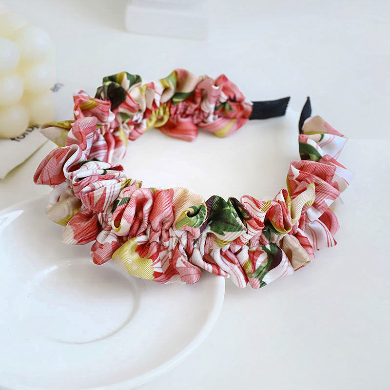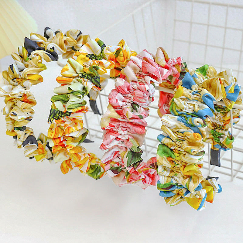 F428韩国东大门新款发箍批发时尚布艺印花褶邹头饰发捆女士头箍hh202104
