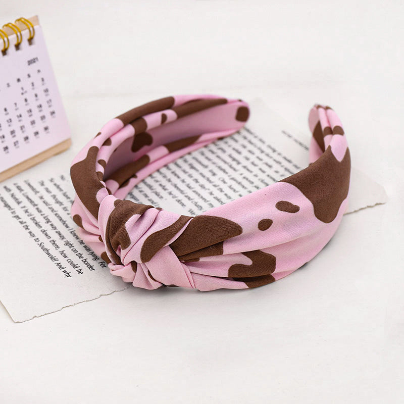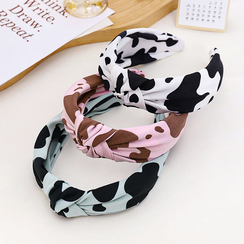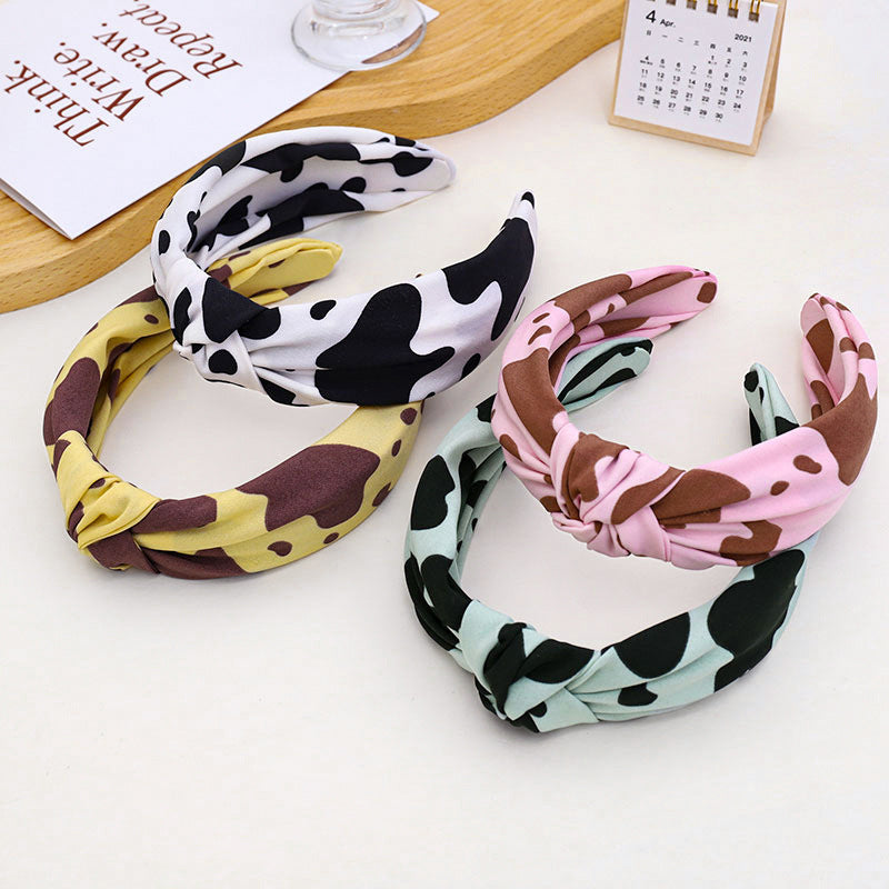 F446跨境新品发箍批发时尚豹纹印花头饰发捆简约中间交叉打结头箍hh202104