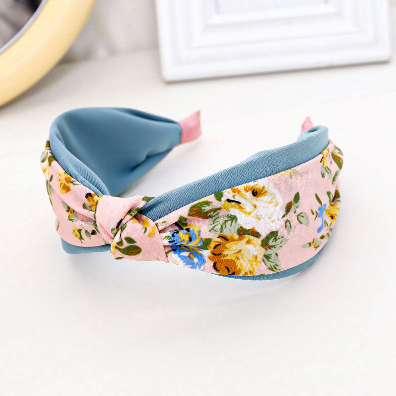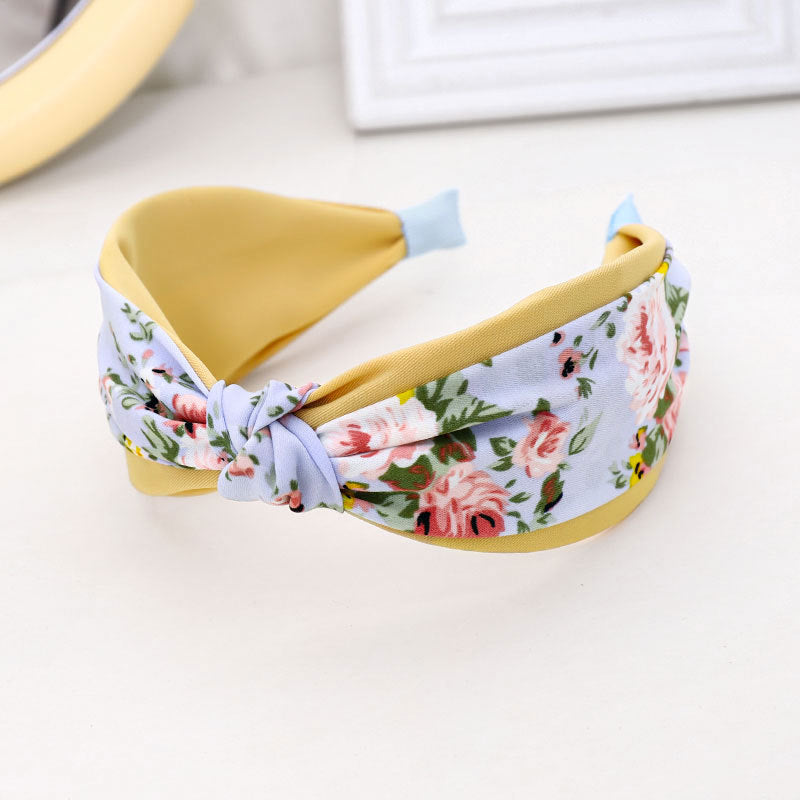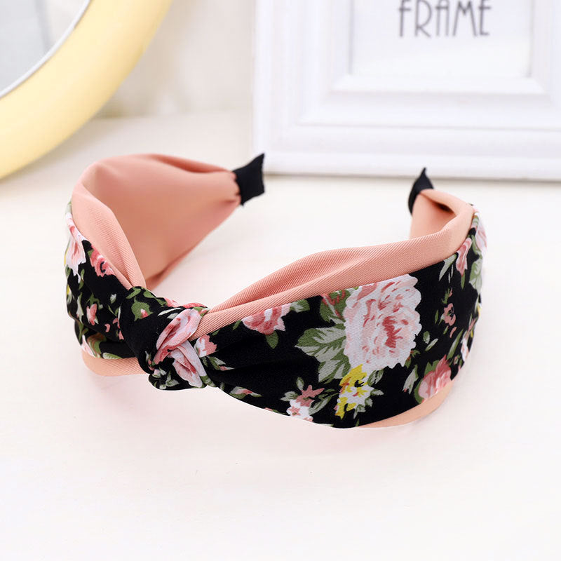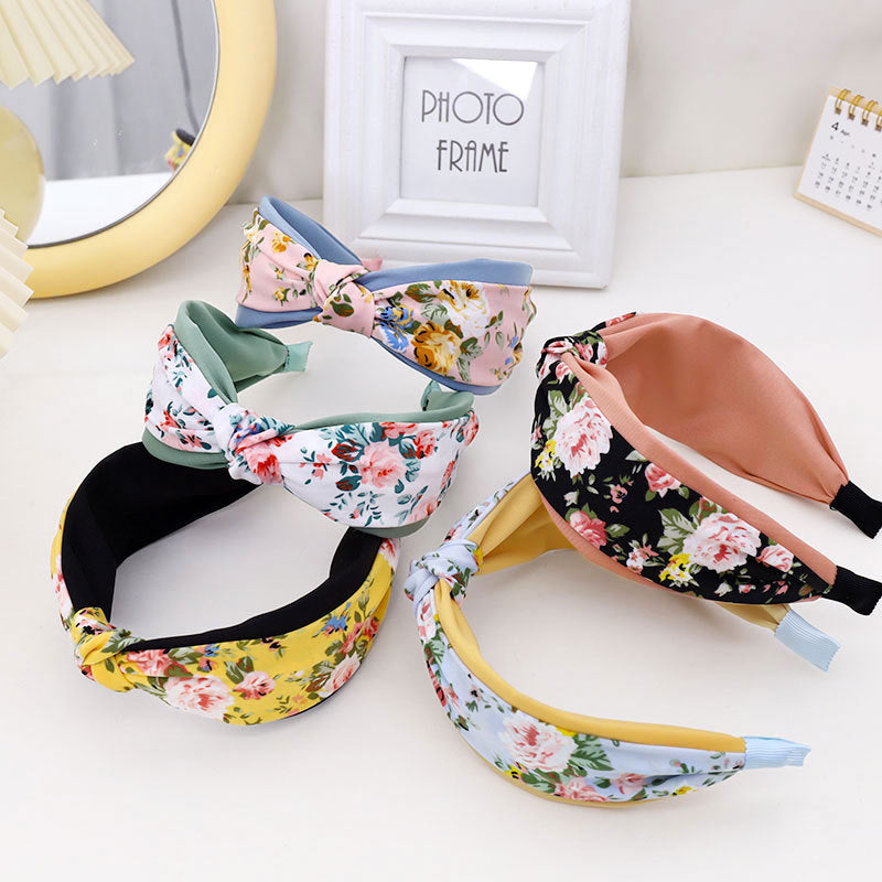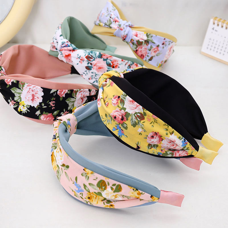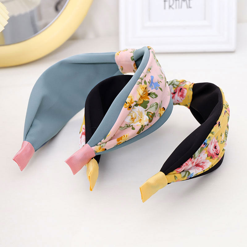 F447韩版新品发箍时尚布艺印花头饰发捆简约中间交叉打结头箍批发hh202104