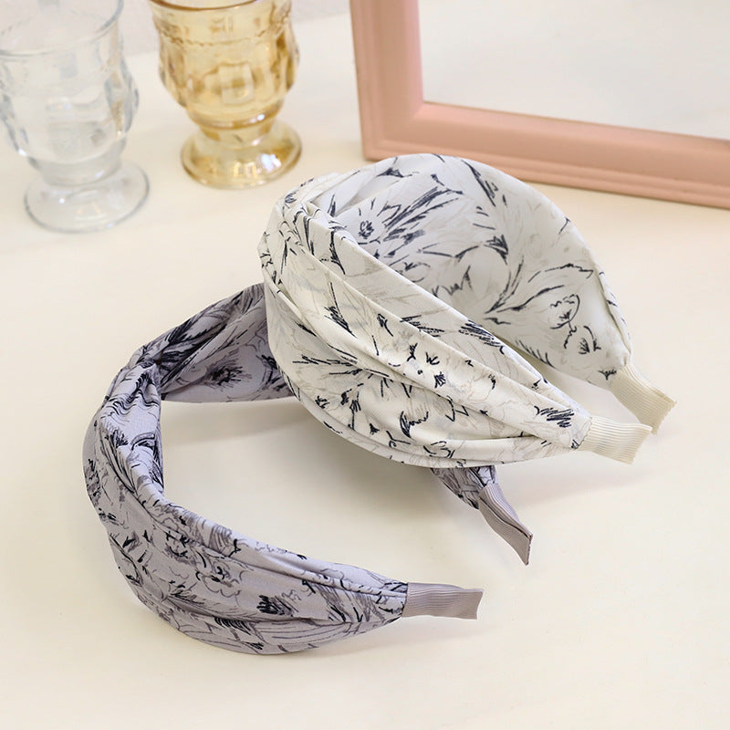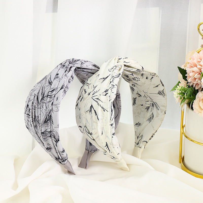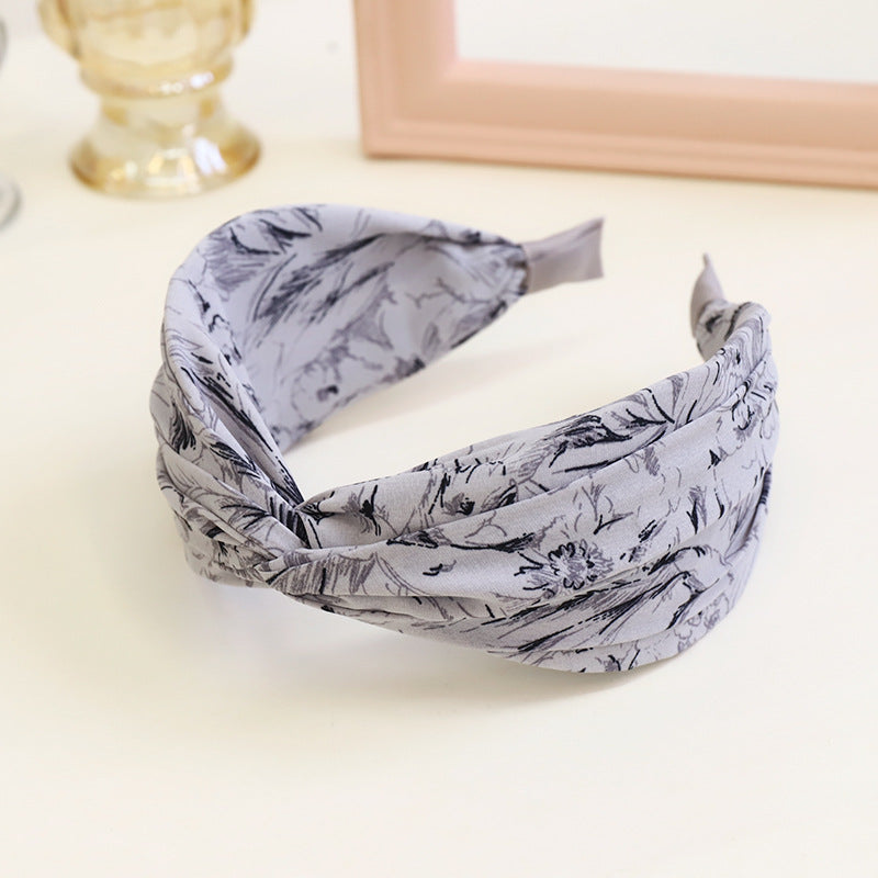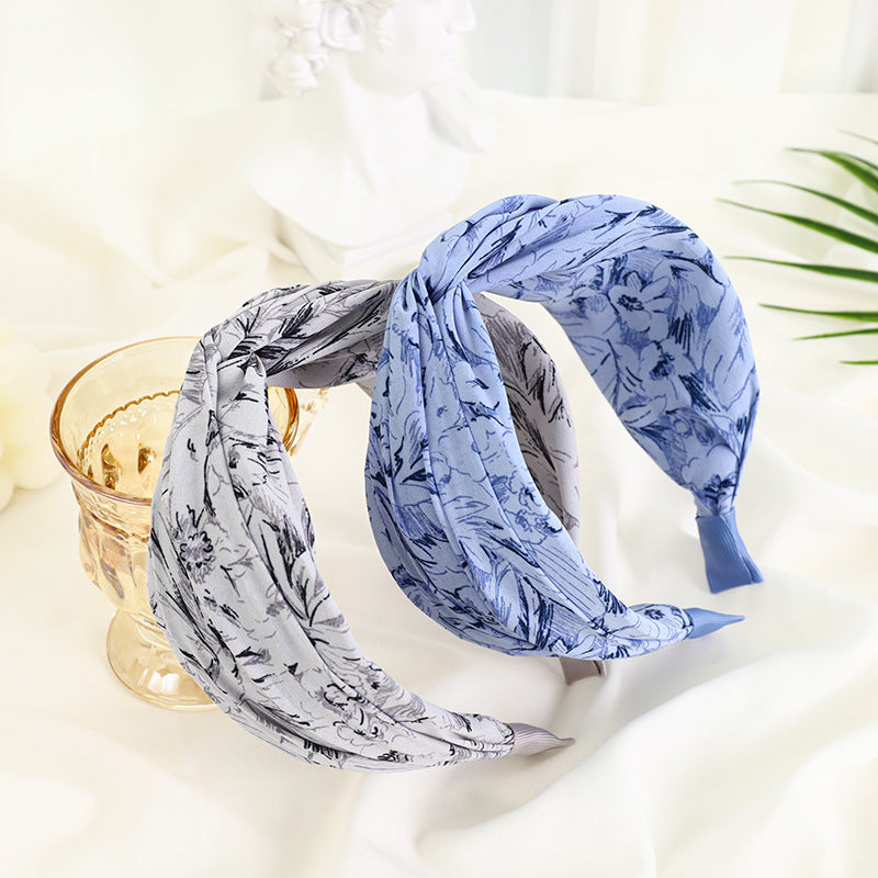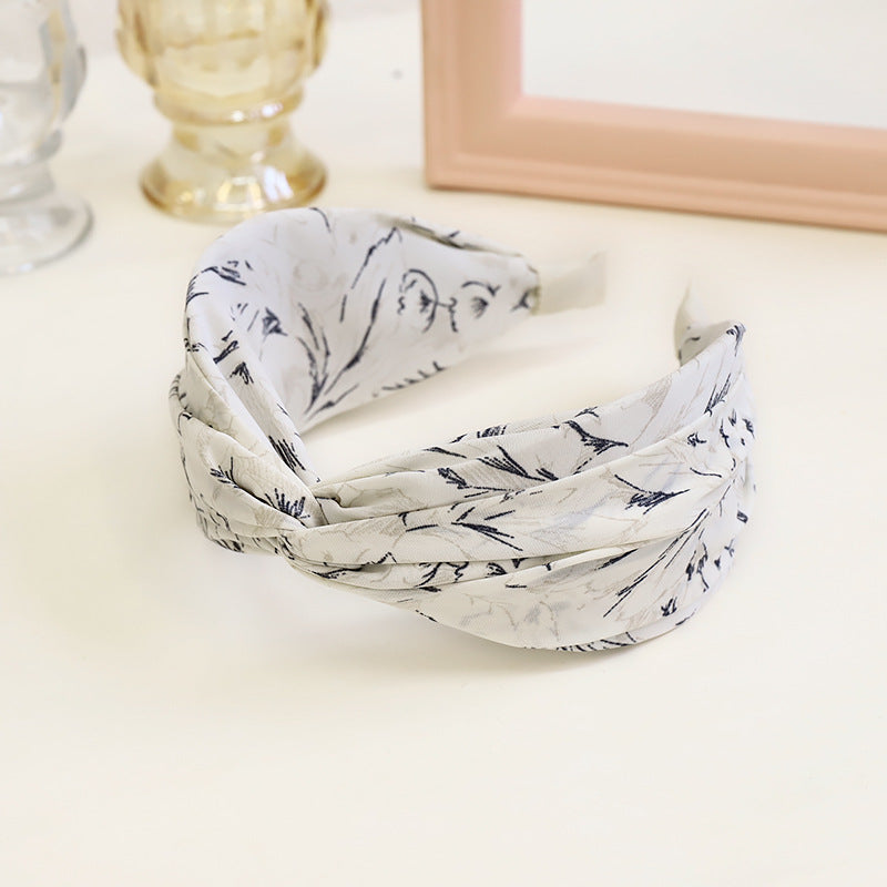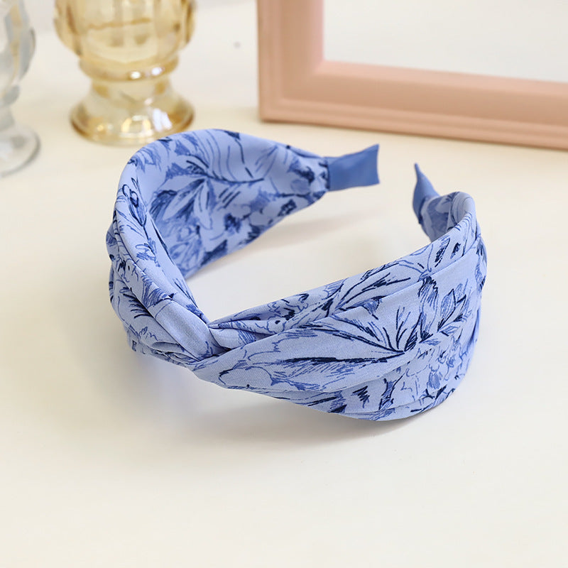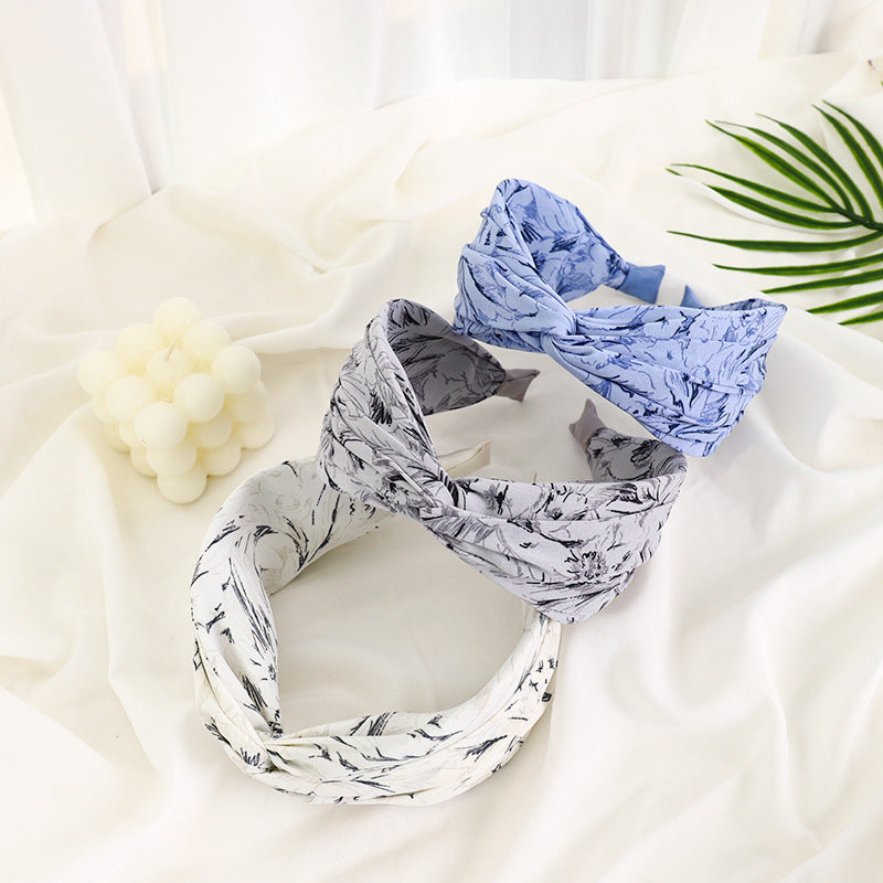 F467春夏新款发箍时尚复古印花布艺发饰头箍中间交叉宽边女士发捆hh202104