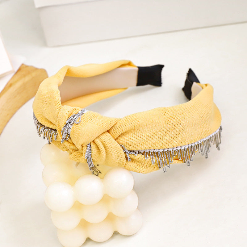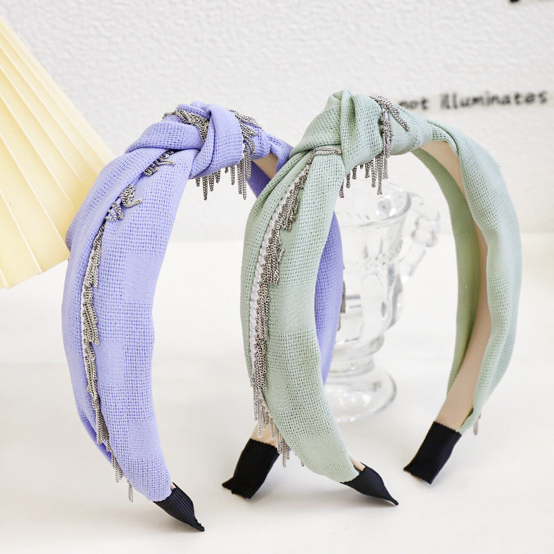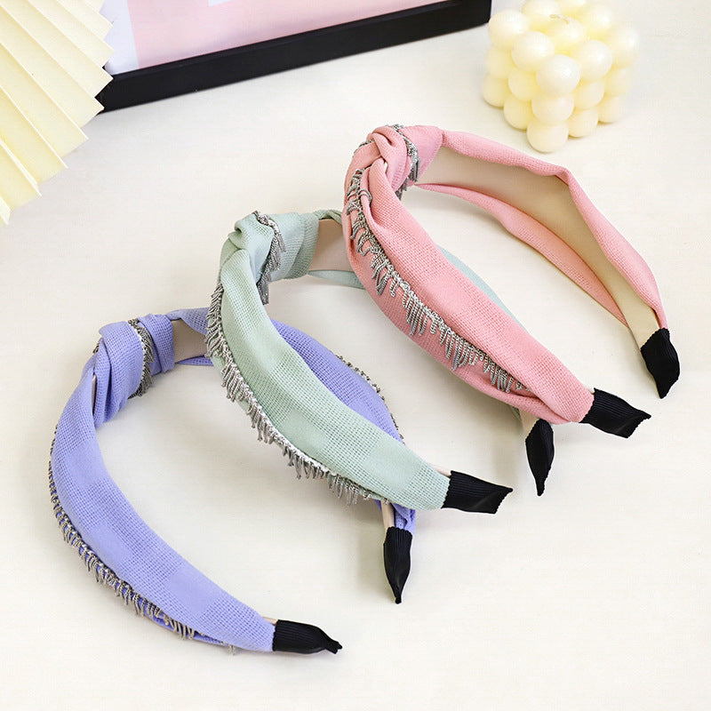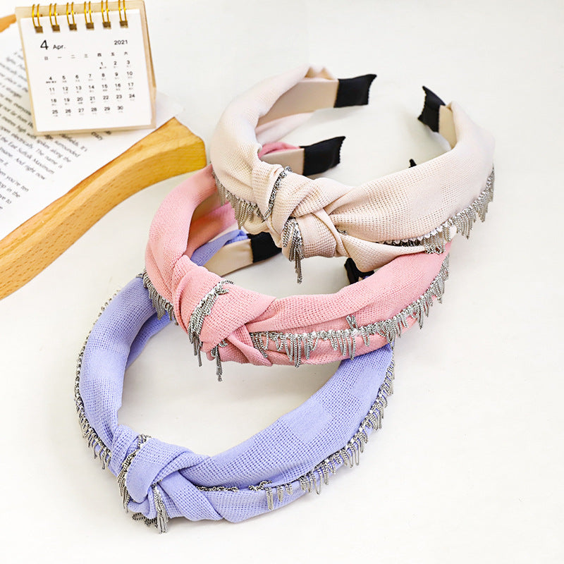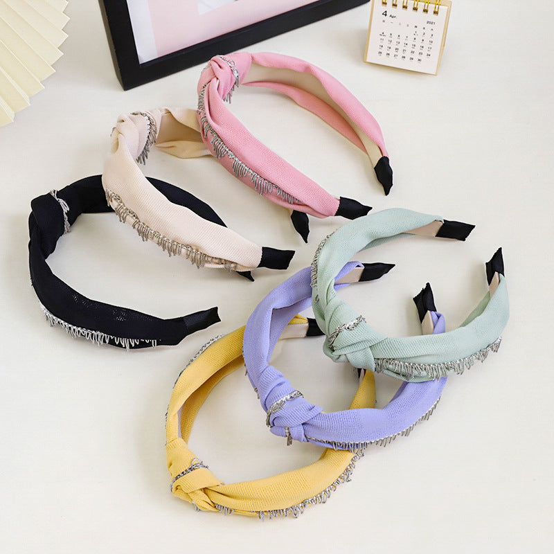 F473跨境欧美纯色布艺流苏头箍简约中间打结发捆女士洗脸头饰发箍hh202105_01