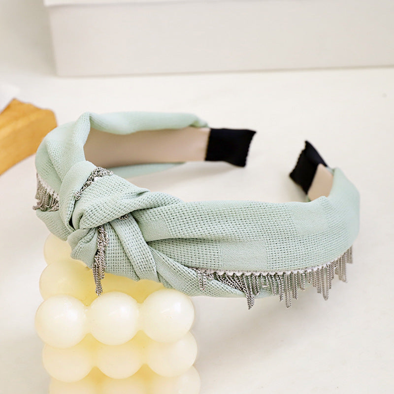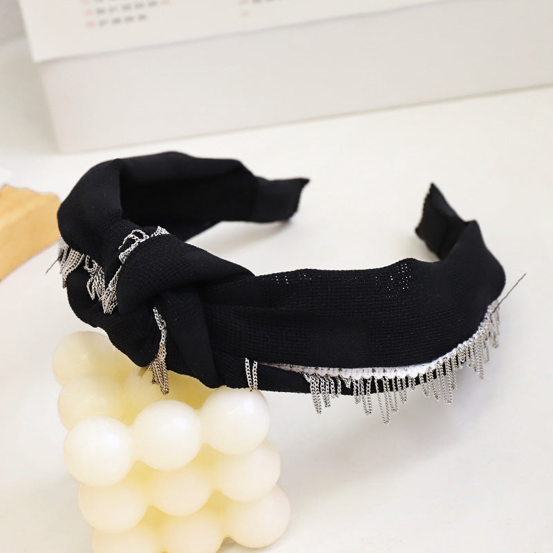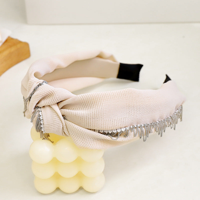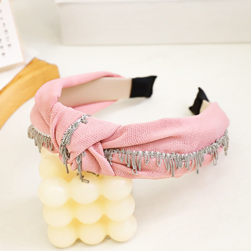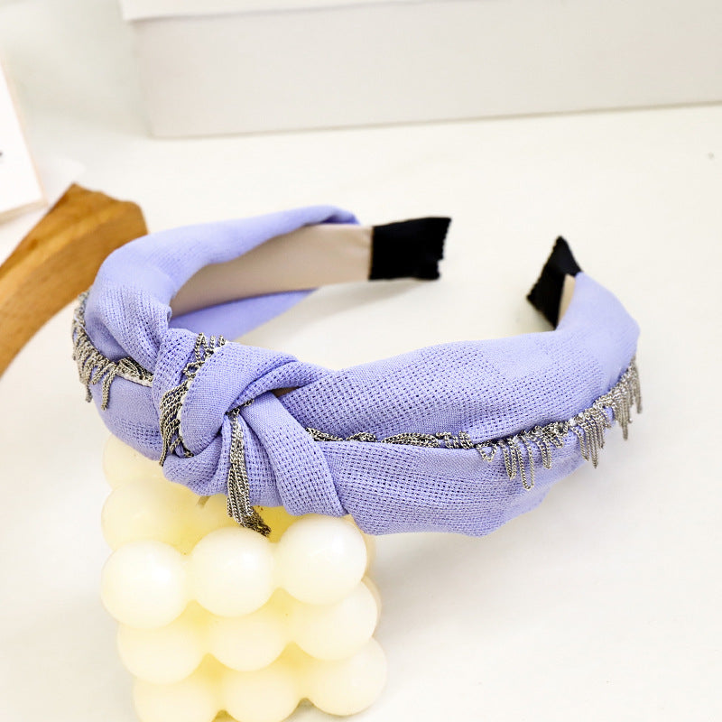 F473跨境欧美纯色布艺流苏头箍简约中间打结发捆女士洗脸头饰发箍hh202105_01