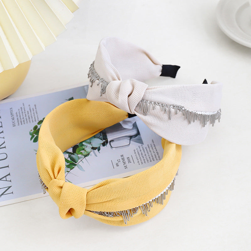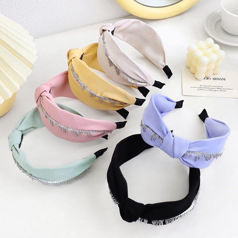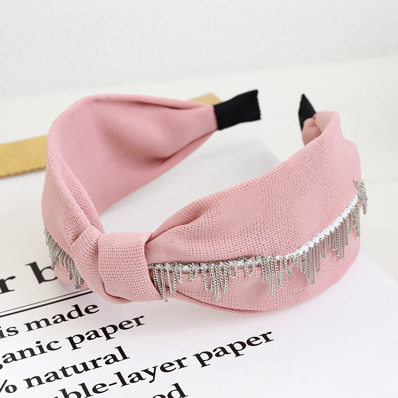 品名:F477新款甜美宽边发捆纯色布艺链条打结头箍网红清新头饰发箍批发hh202105
