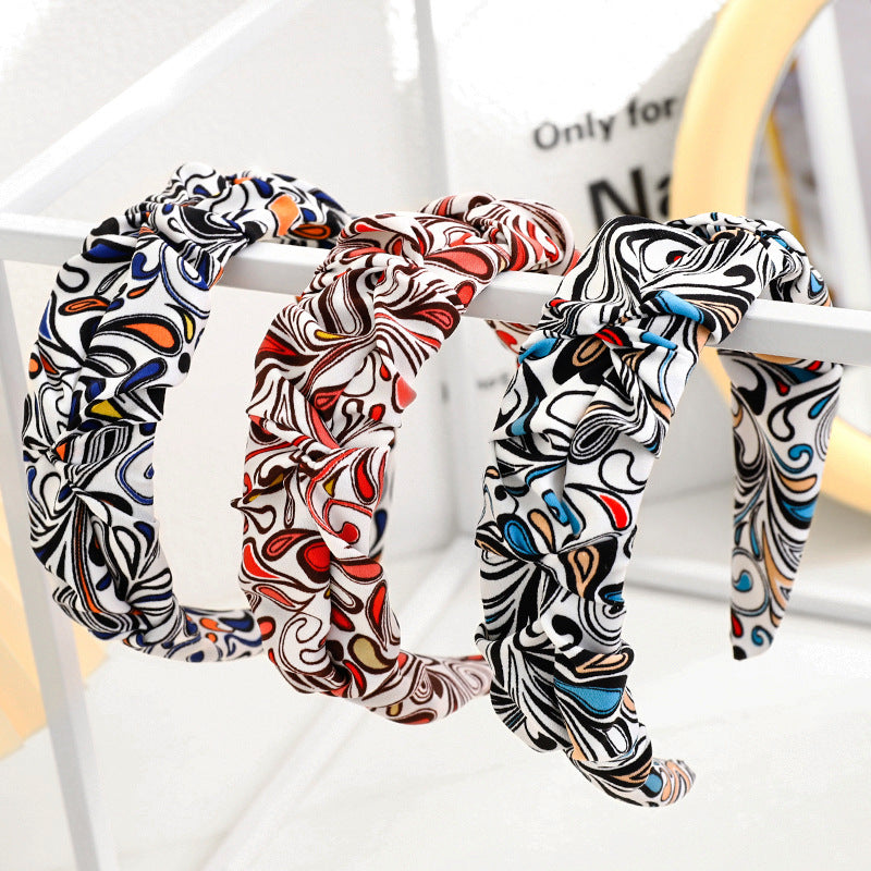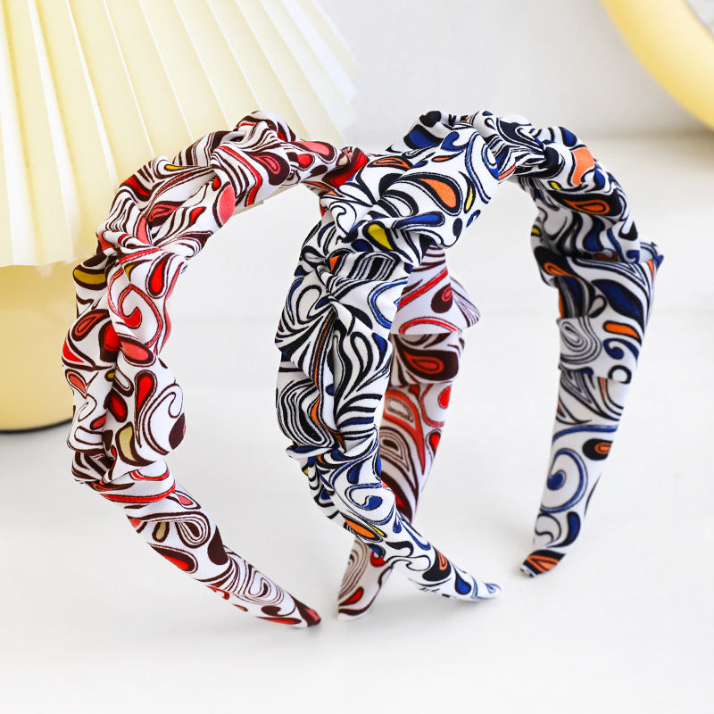 F481跨境欧美印花褶皱头箍工厂批发网红发捆女士外出压发洗脸发箍hh202105_02
