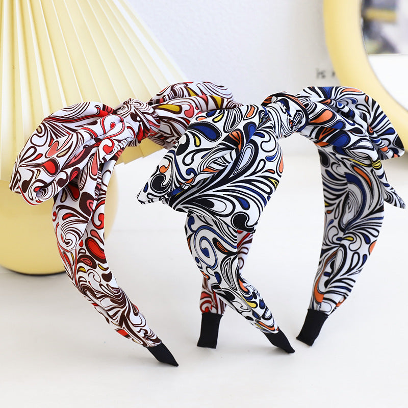 F482跨境新品头箍欧美印花布艺蝴蝶结头箍潮流时尚压发洗脸女发箍hh202105_02
