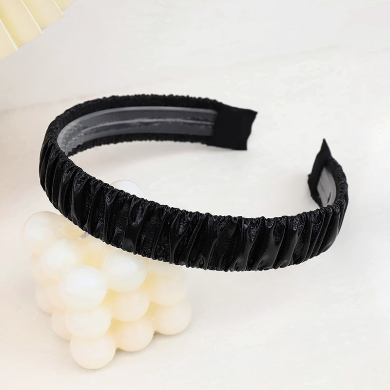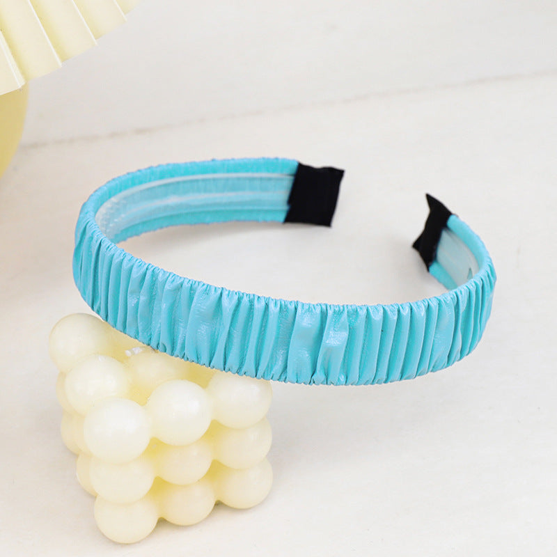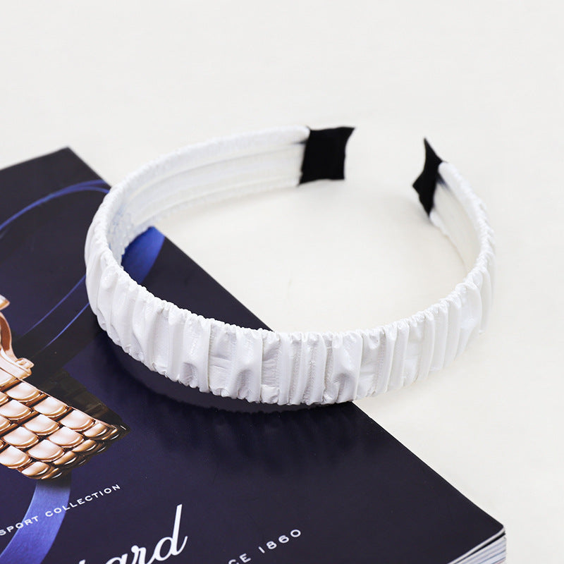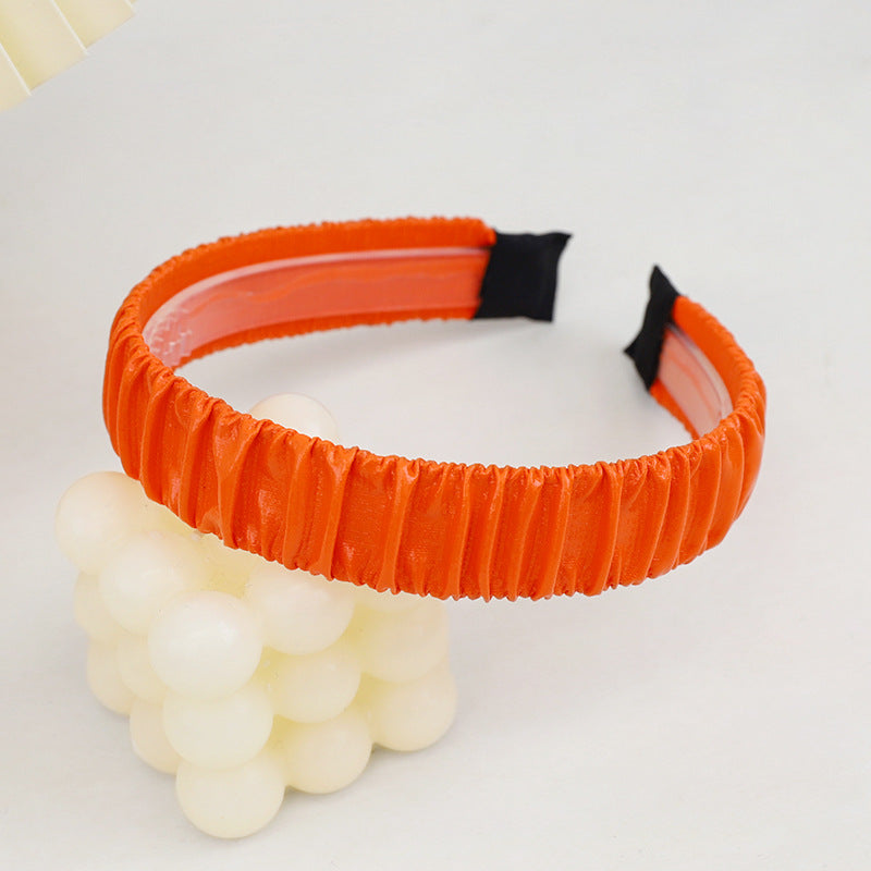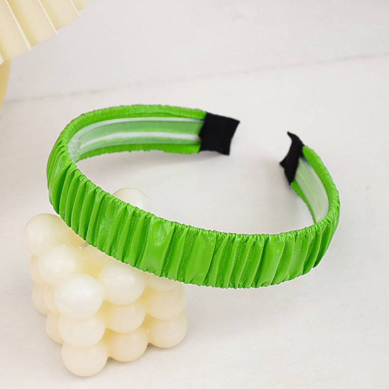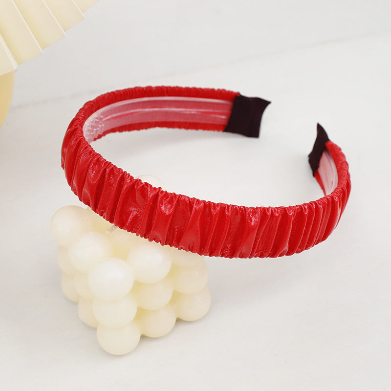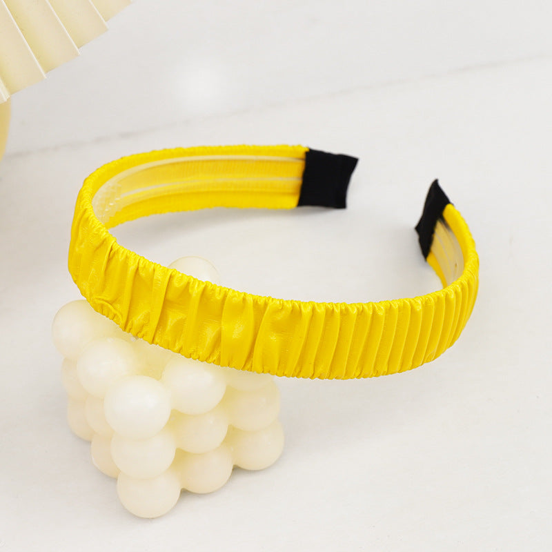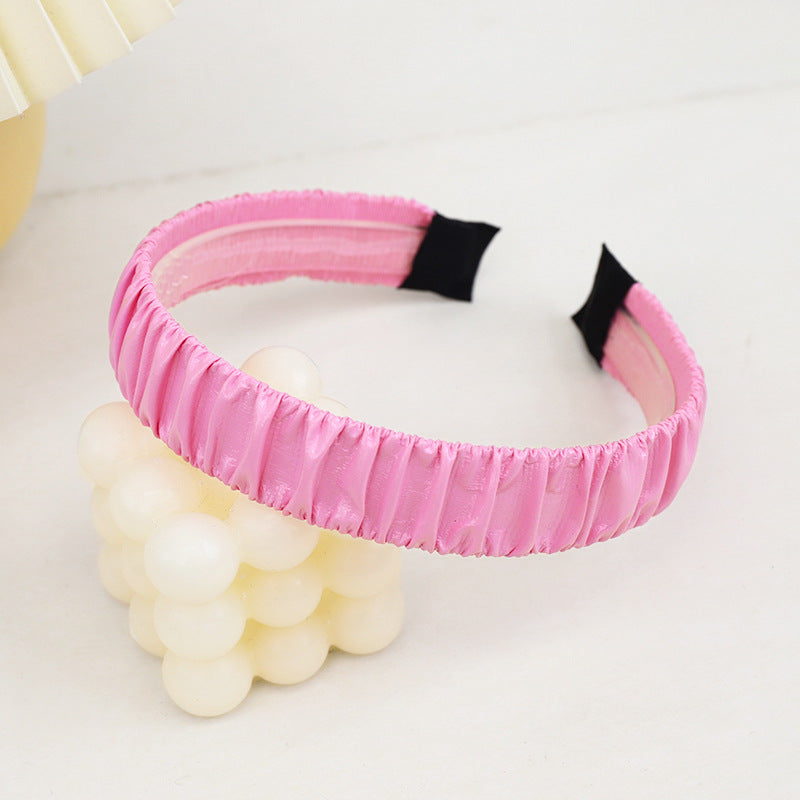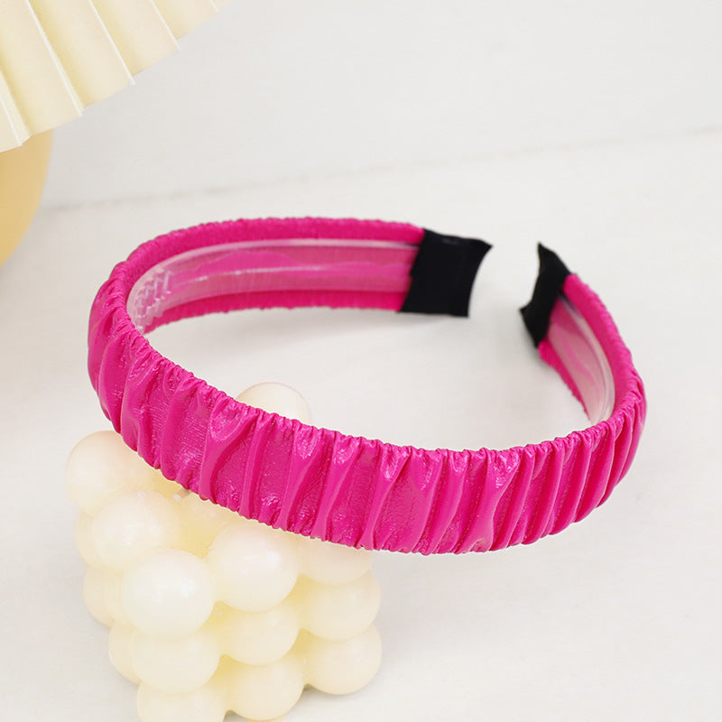 F485新款可爱仙女头箍时尚PU皮质头箍糖果色皮革褶皱发饰女发箍hh202105_01