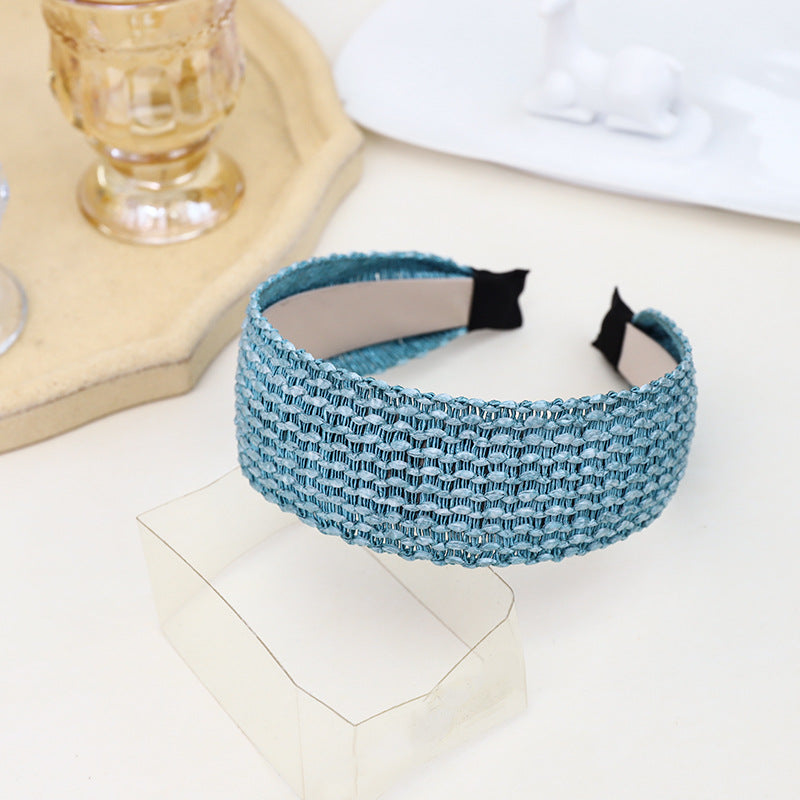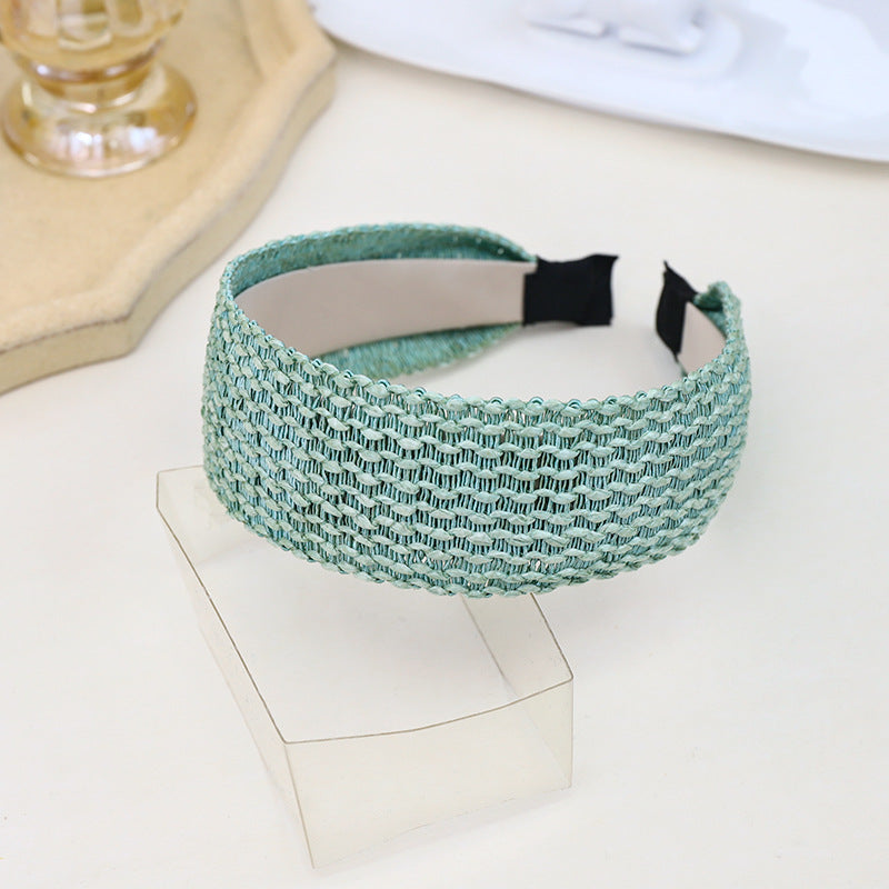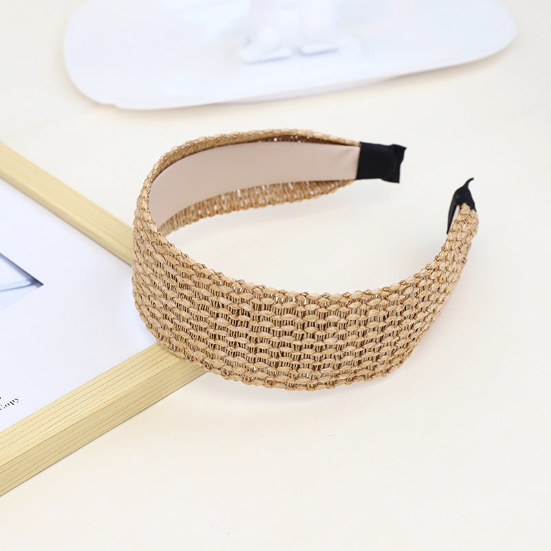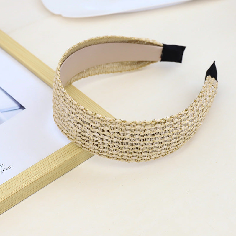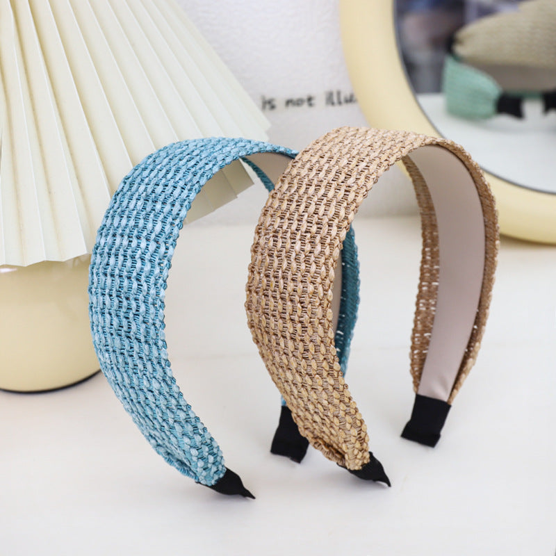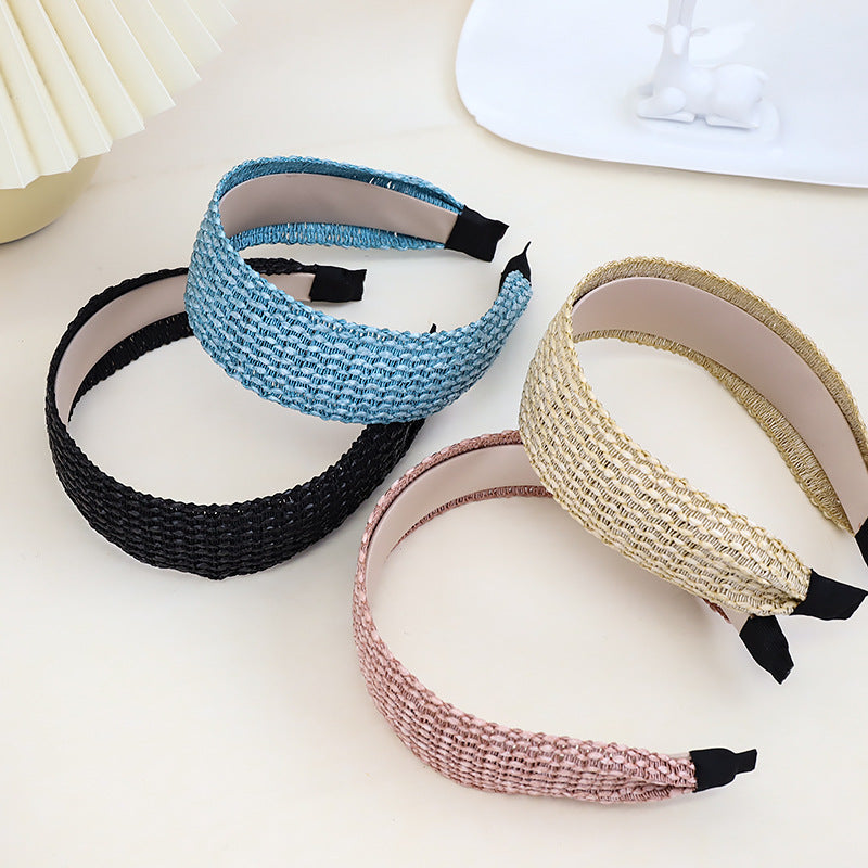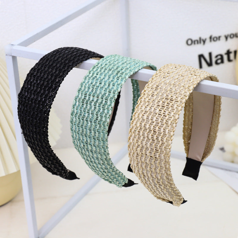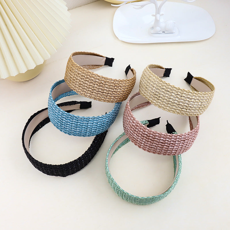 F491韩国新品简约编织纯色头箍甜美复古简约草编压发洗脸发箍hh202105_01