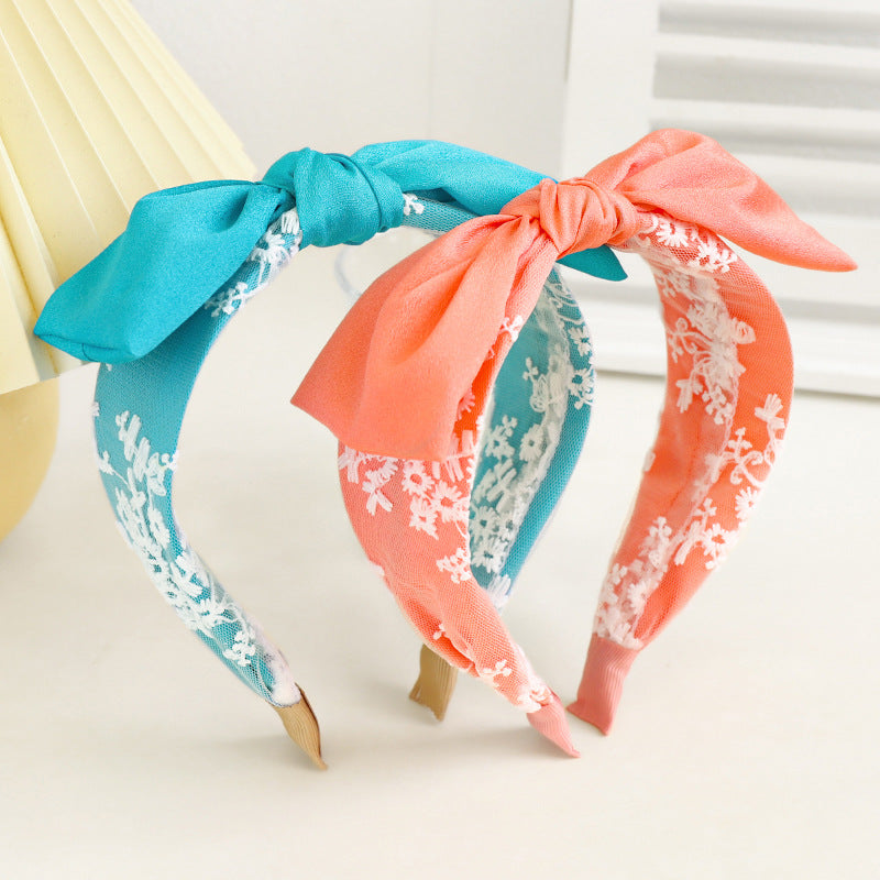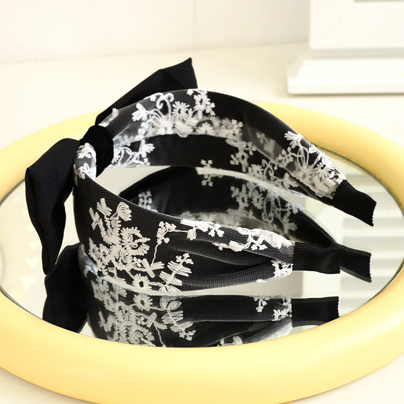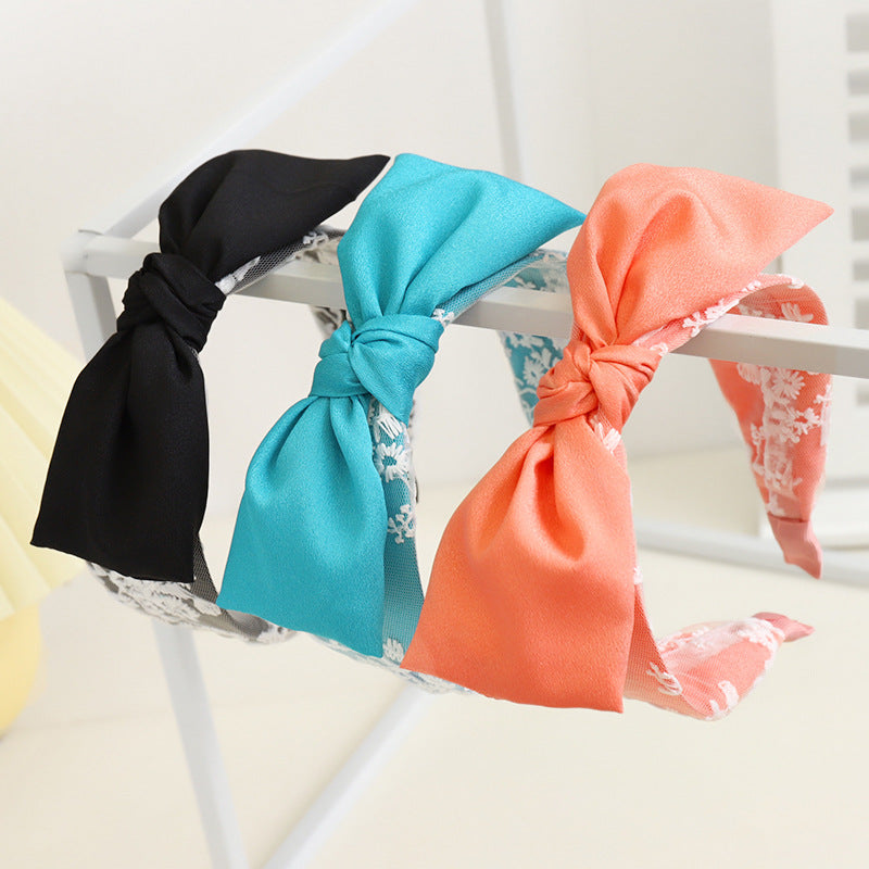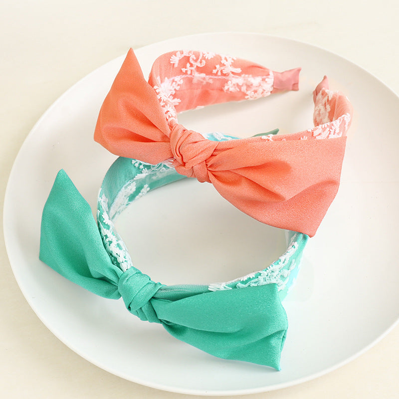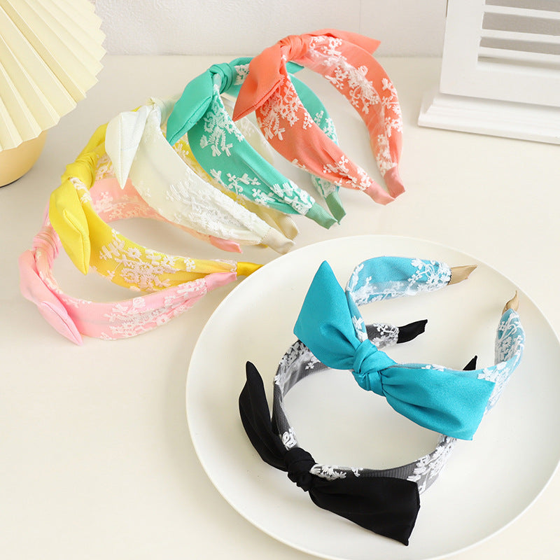 F495韩版新品发箍纯色布艺蝴蝶结头饰发捆时尚法式复古网纱女头箍hh202105_01