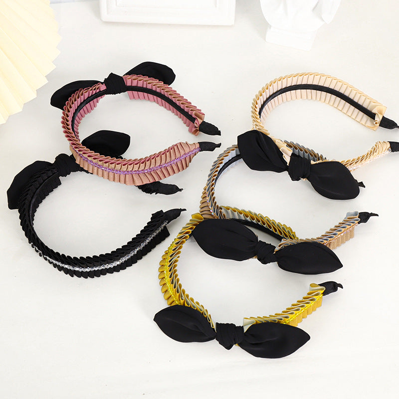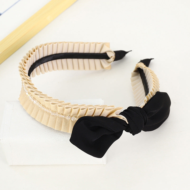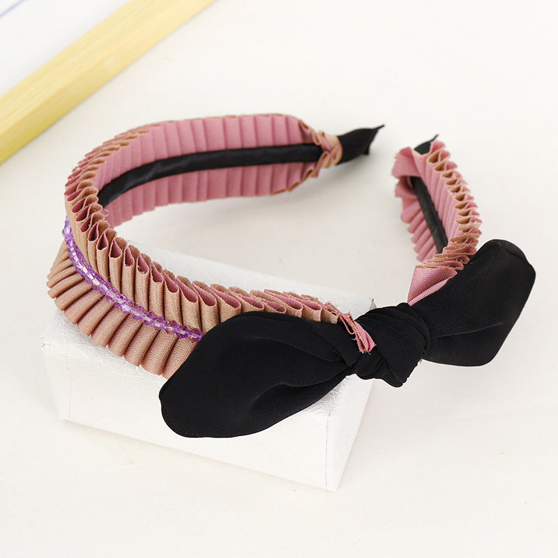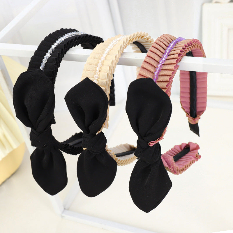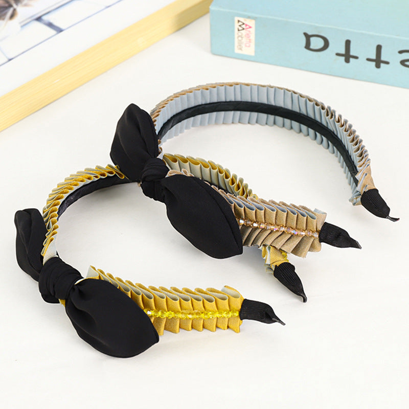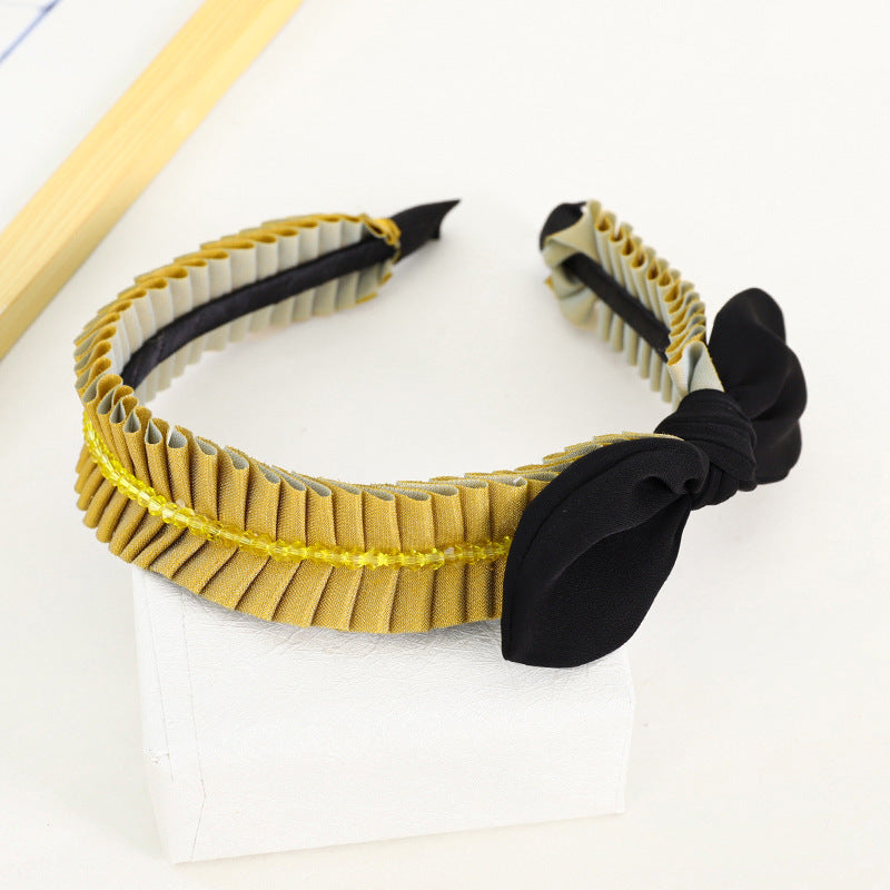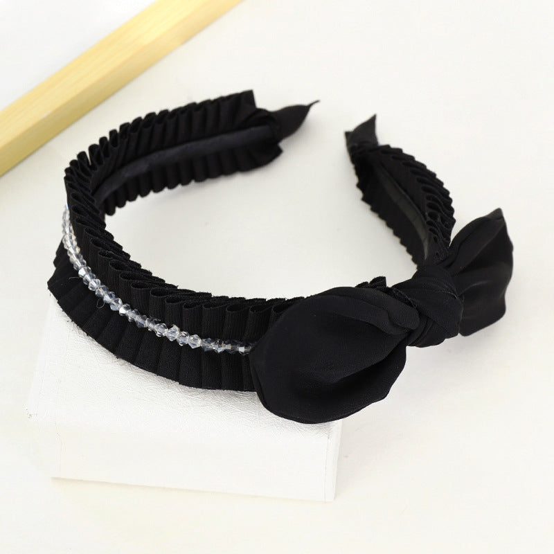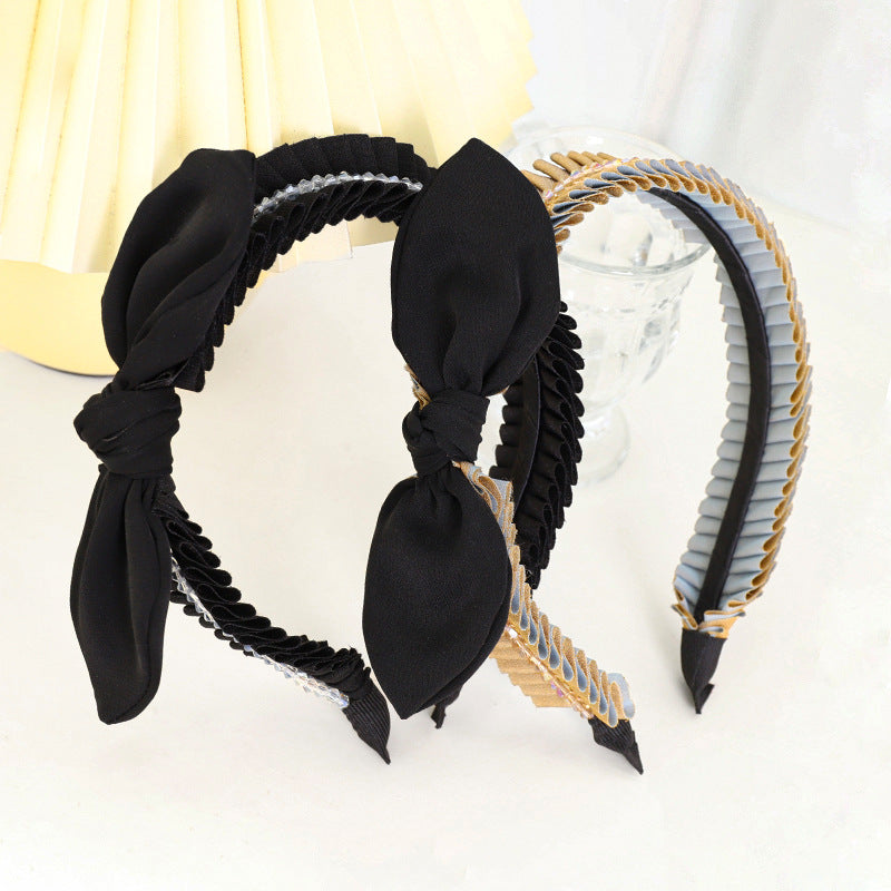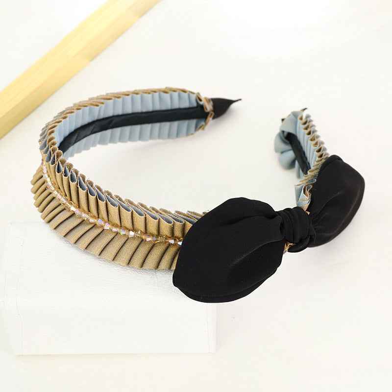 F517新品头箍复古褶皱布艺串珠水晶头饰发捆时尚侧边蝴蝶结发箍hh202105_01