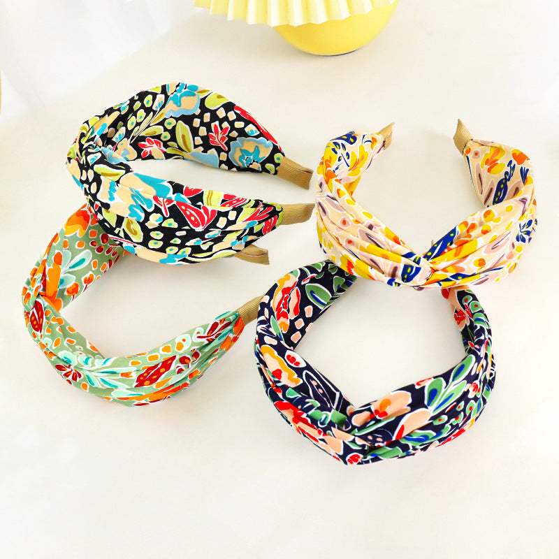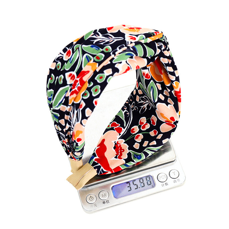 F518新款发箍欧美风雪纺印花交叉发饰头箍女士外出压发洗脸发捆hh202105_01