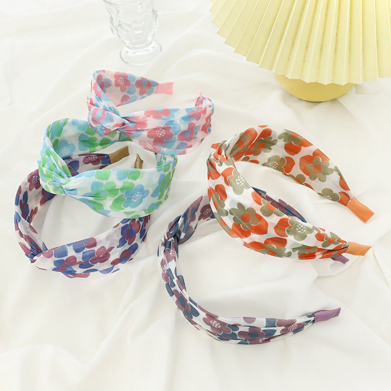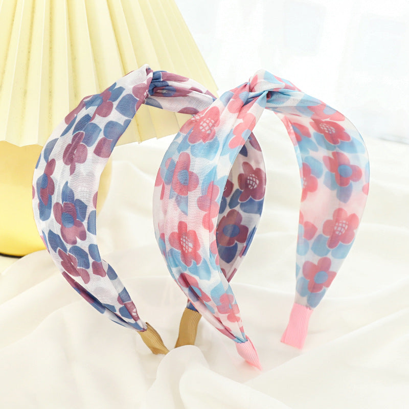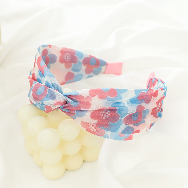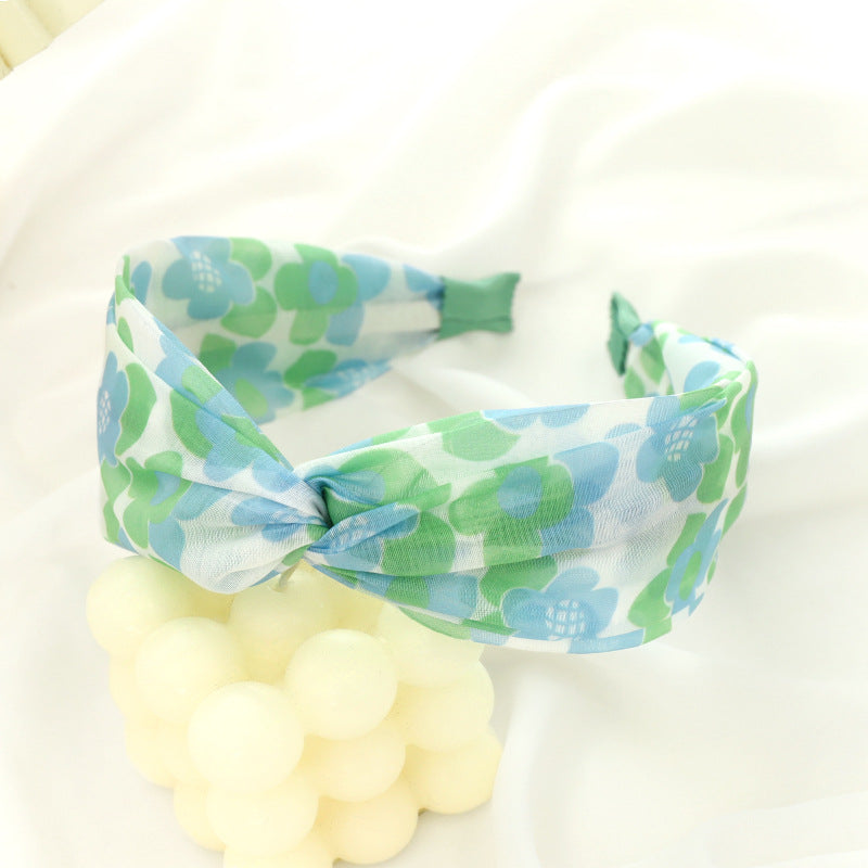 F525夏季新品法式復古髮飾頭箍小清新花朵印花歐根紗交叉頭飾髮箍spr&sum