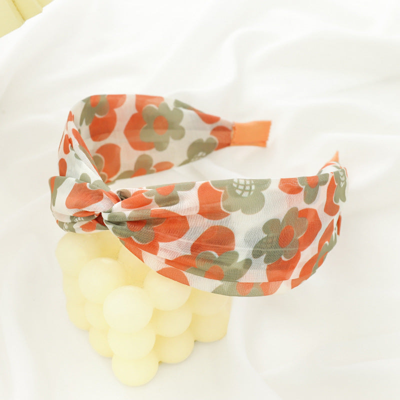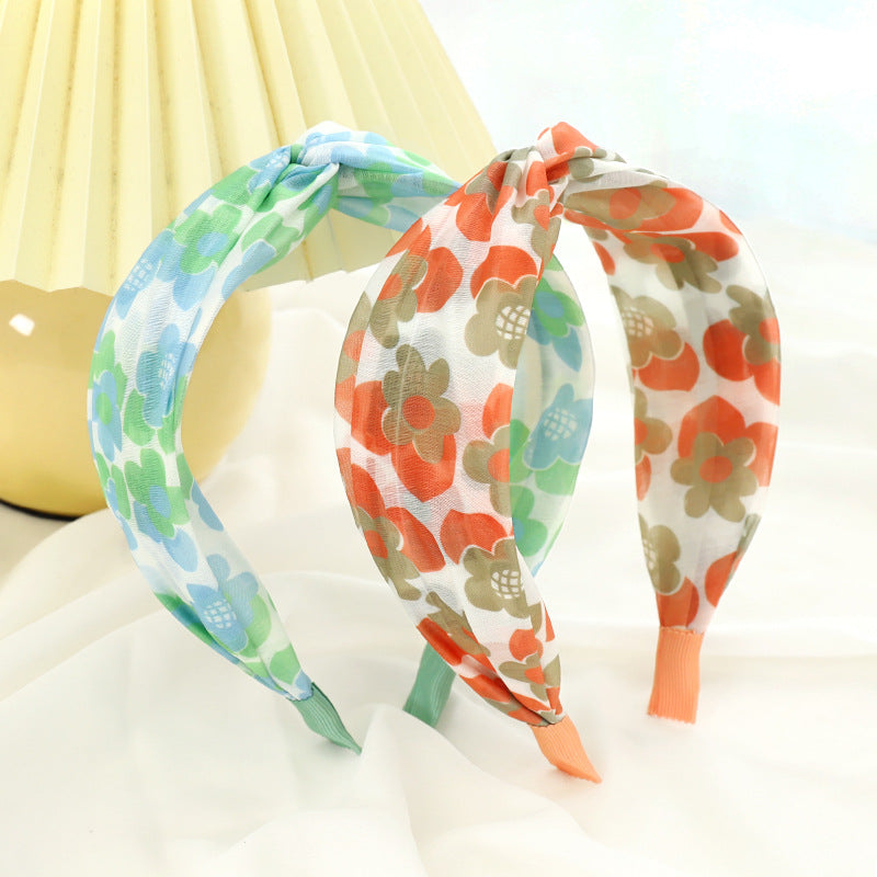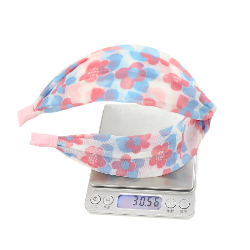 品名:F525夏季新品法式復古髮飾頭箍小清新花朵印花歐根紗交叉頭飾髮箍spr&sum