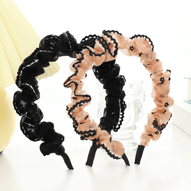 品名:F529夏季新品溫柔風甜美蕾絲頭箍發卡仙女小清新褶皺網紗頭飾發箍spr&sum