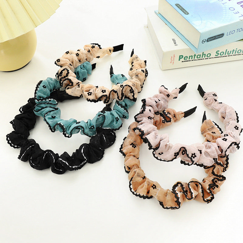 F529夏季新品溫柔風甜美蕾絲頭箍發卡仙女小清新褶皺網紗頭飾發箍spr&sum