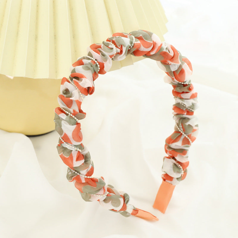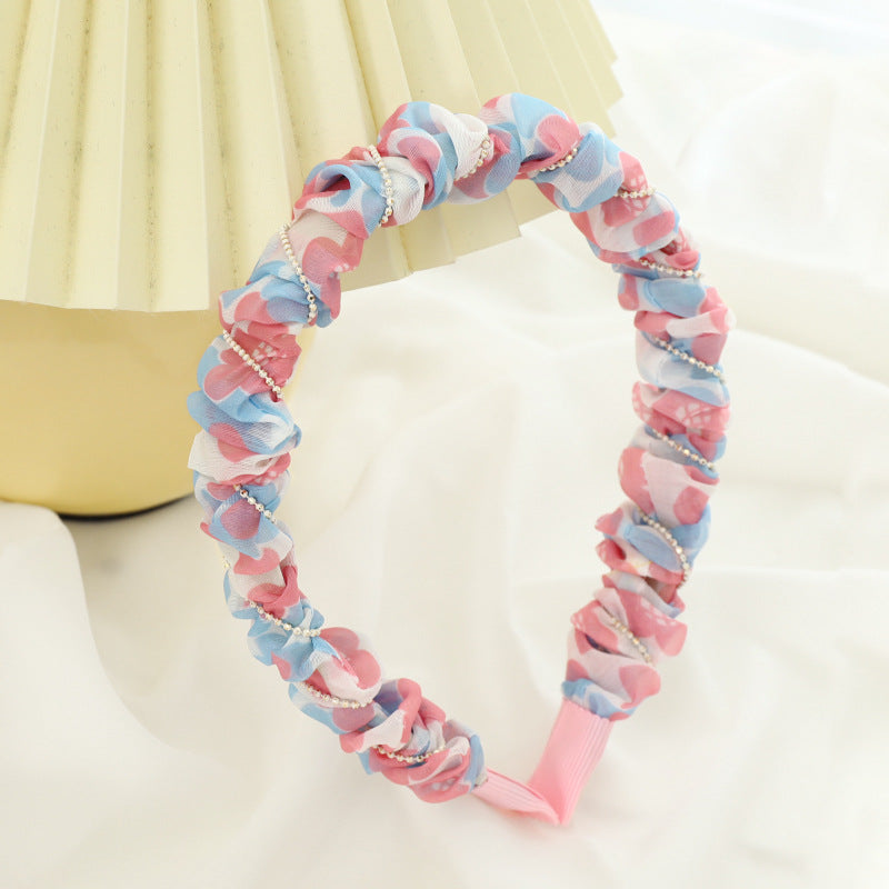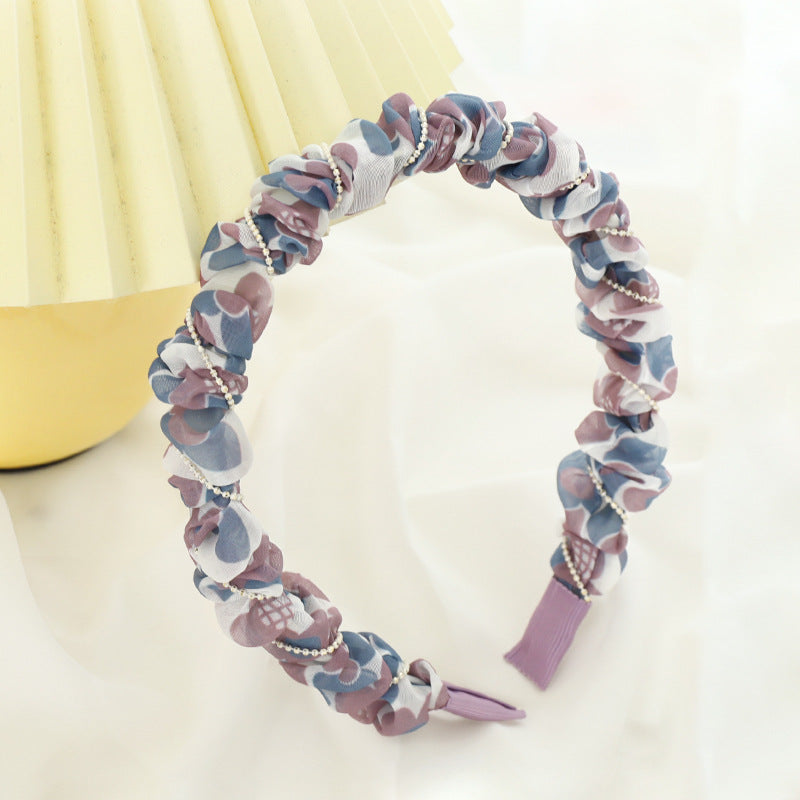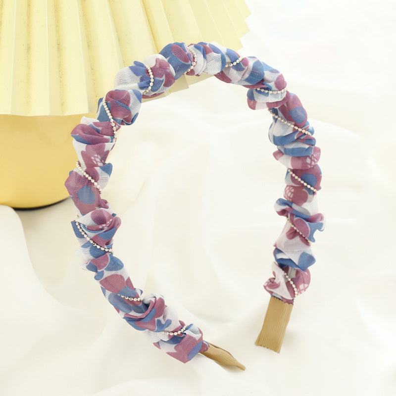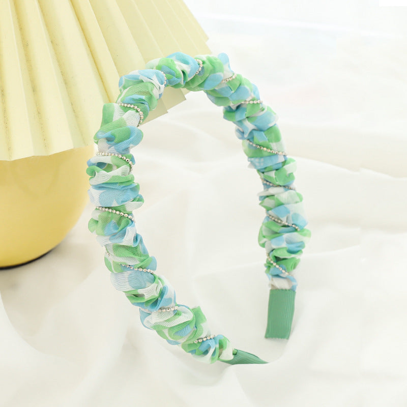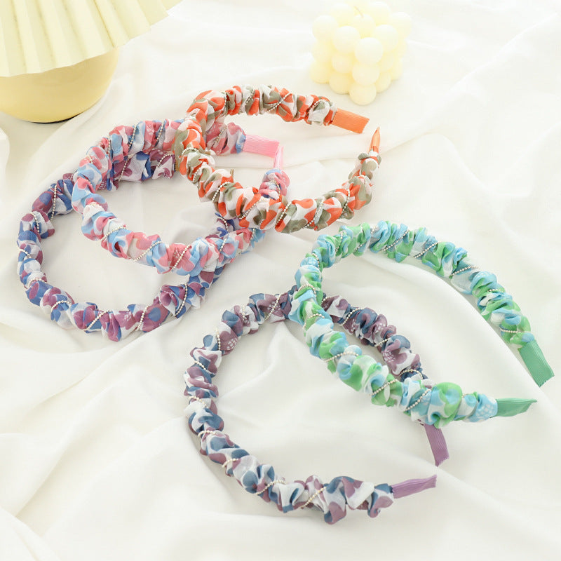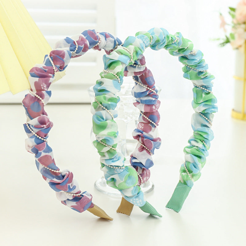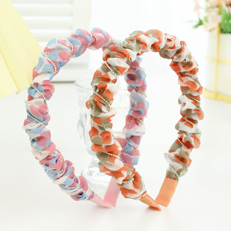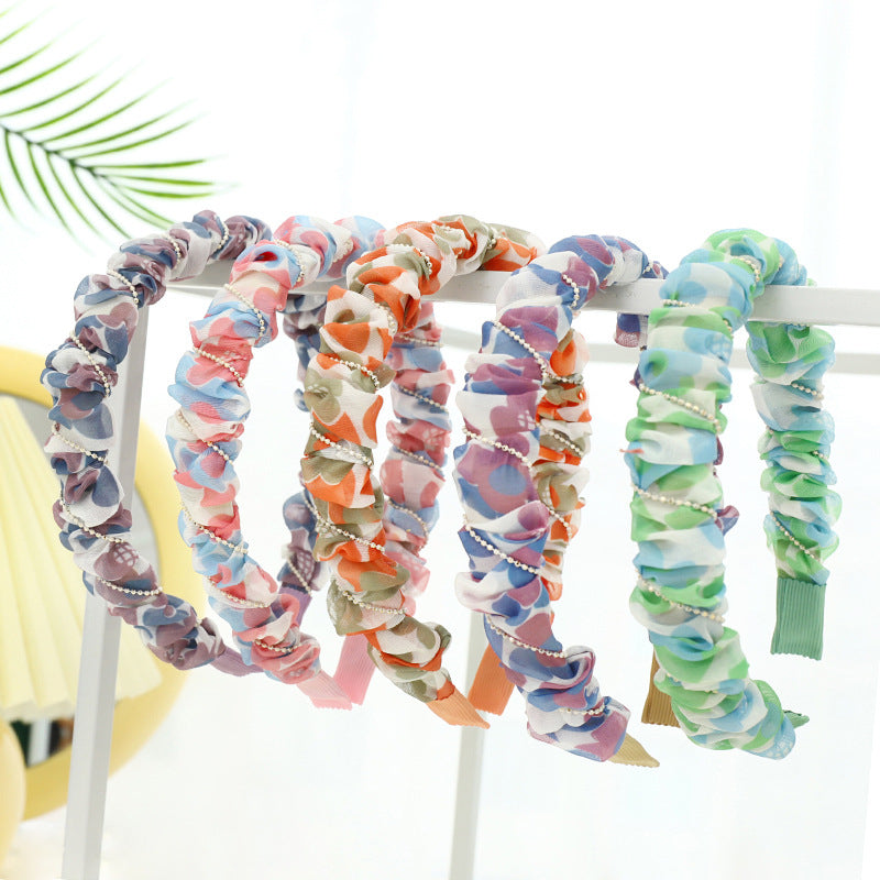 F5332021夏季新品女士外出壓髮洗臉頭箍小清新印花歐根紗褶皺髮箍spr&sum