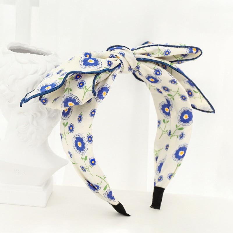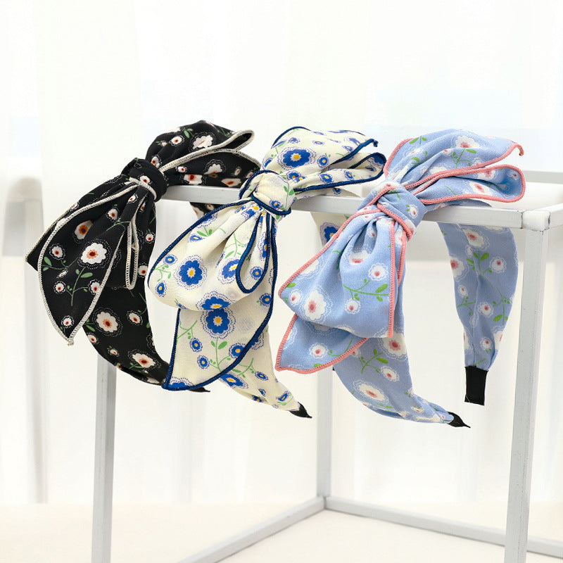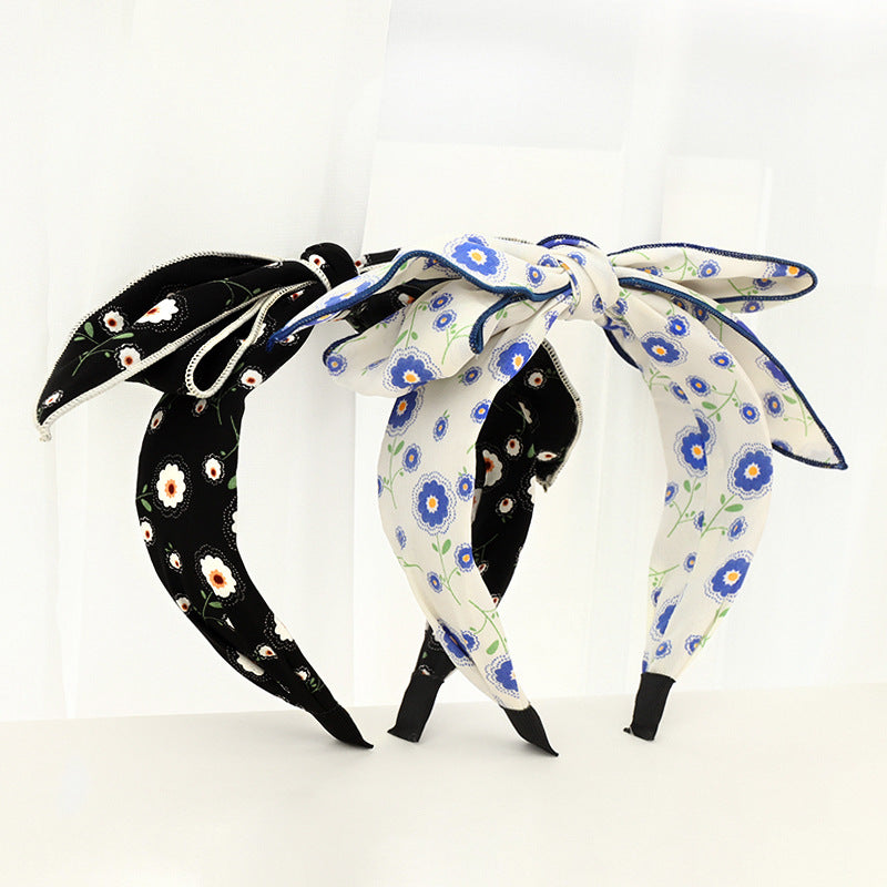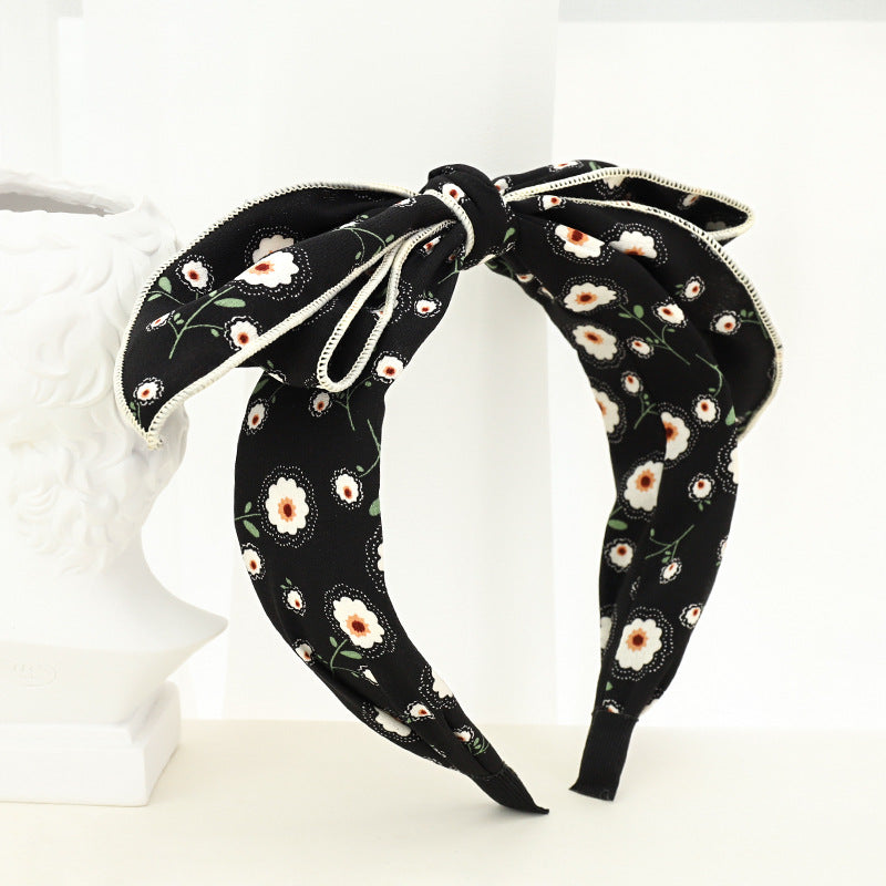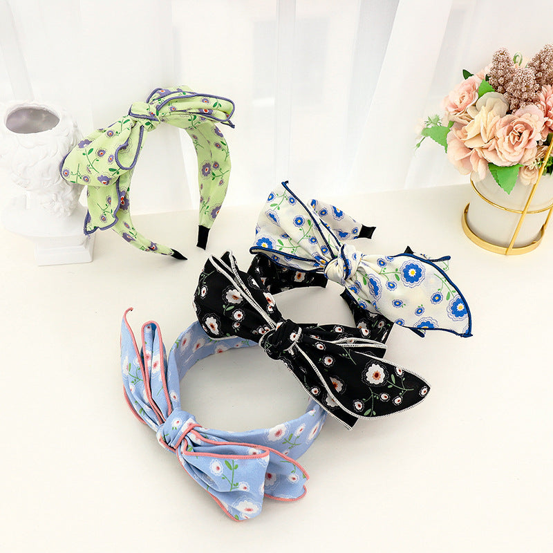 F534韓國東大門新款女士頭箍時尚小雛菊印花布藝蝴蝶結發飾髮箍YC20210920