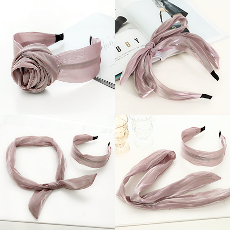 F540韓版組合套裝髮飾ins蝴蝶結頭箍簡約發帶亮絲網紗玫瑰花髮箍YC20210924