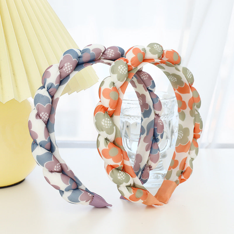 品名:F542夏季新品復古幾何花朵髮飾頭箍日韓版印花布藝海棉麻花辮髮箍hh202106