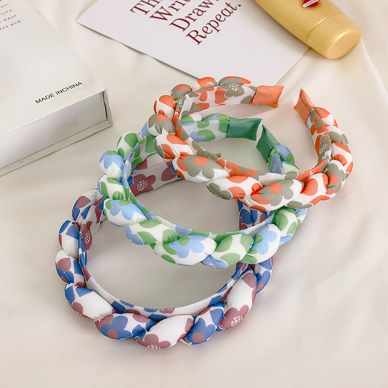 F542夏季新品復古幾何花朵髮飾頭箍日韓版印花布藝海棉麻花辮髮箍YC20210924