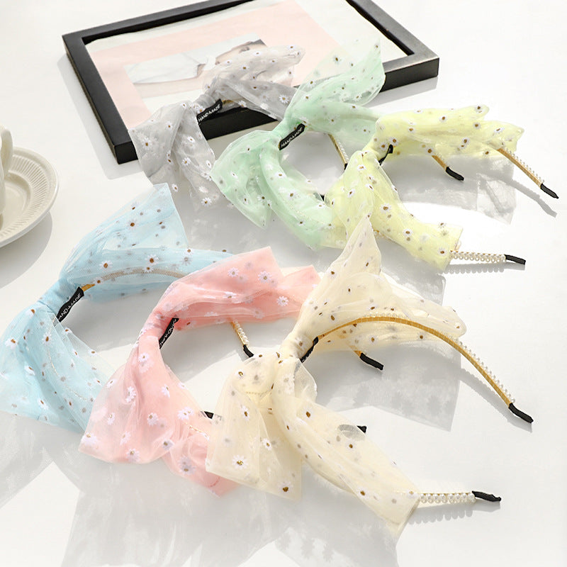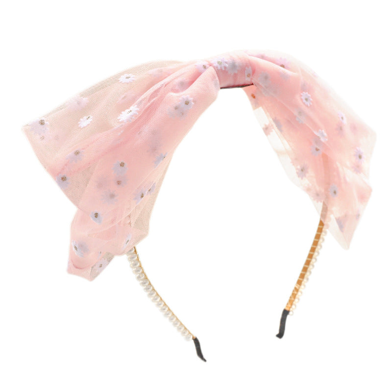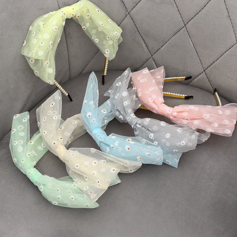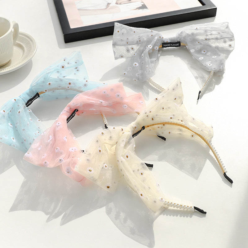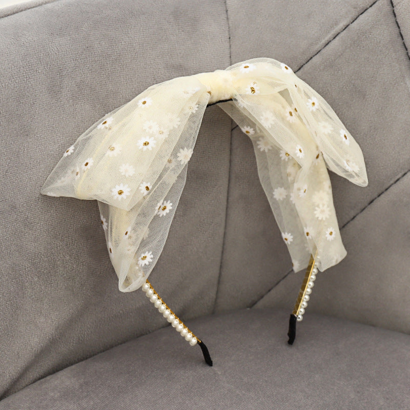 品名:F5432021夏季新款韓版純色網紗蝴蝶結頭飾髮卡森系超仙珍珠細髮箍hh202106