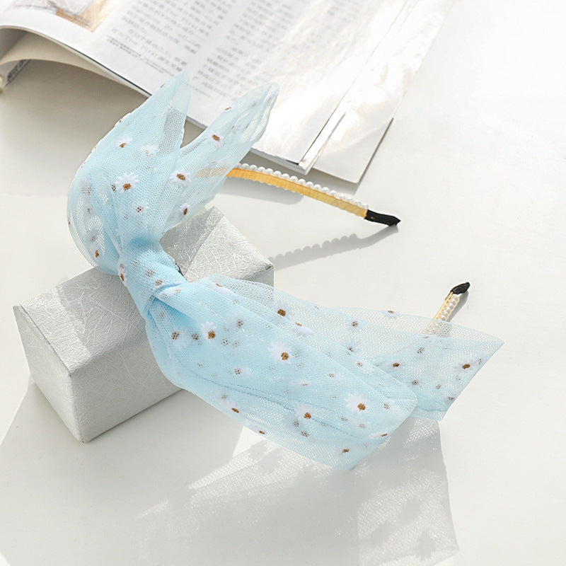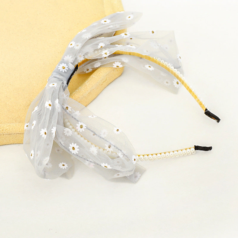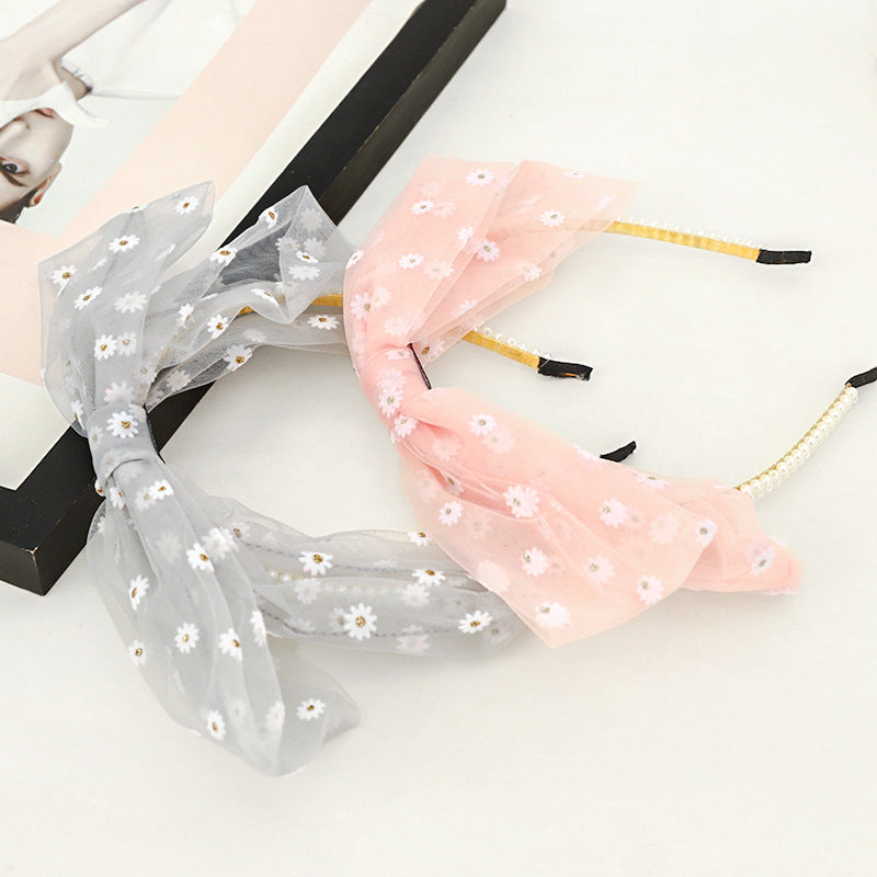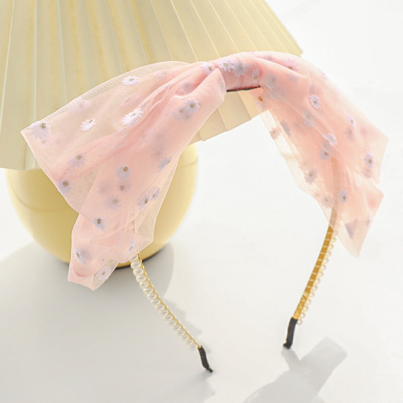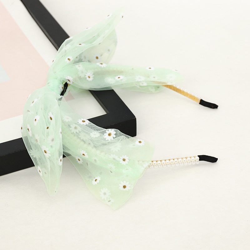 品名:F5432021夏季新款韓版純色網紗蝴蝶結頭飾髮卡森系超仙珍珠細髮箍hh202106