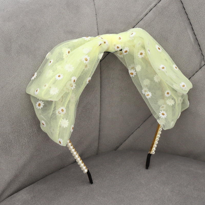 F5432021夏季新款韓版純色網紗蝴蝶結頭飾髮卡森系超仙珍珠細髮箍YC20210920