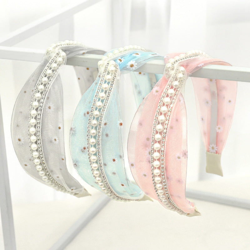 品名:F544跨境夏季新款韓版發飾髮卡純色網紗珍珠亮鉆交叉女士洗臉髮箍hh202106