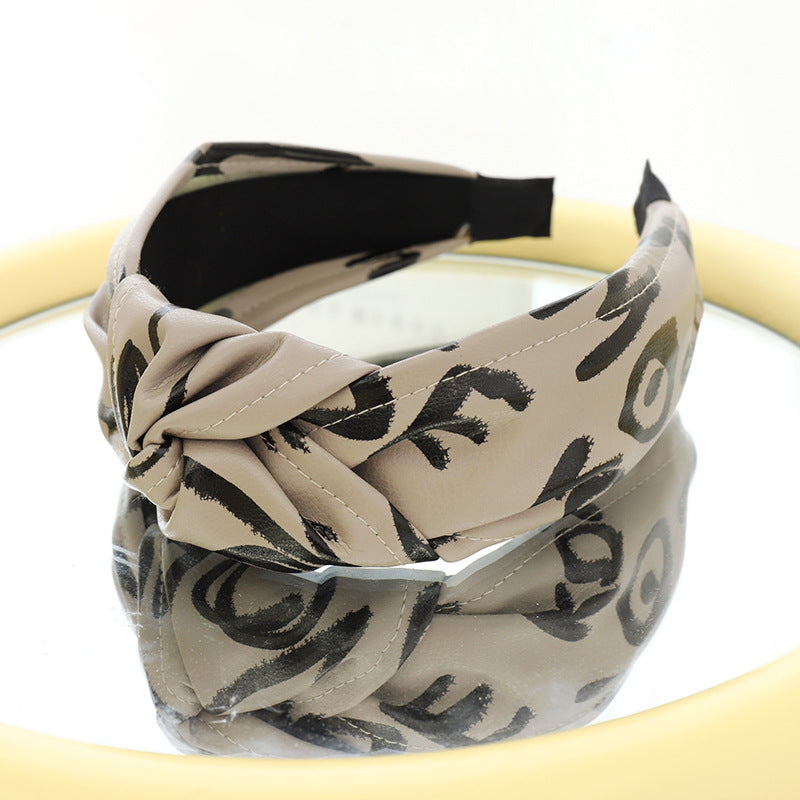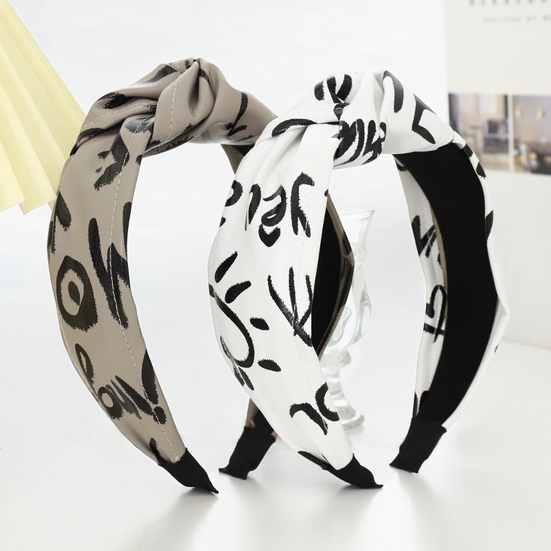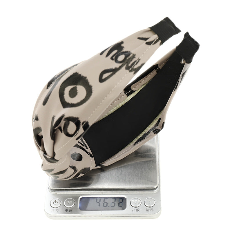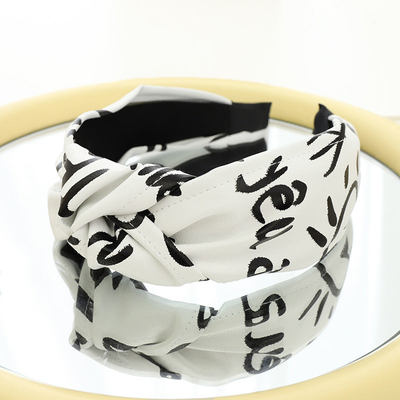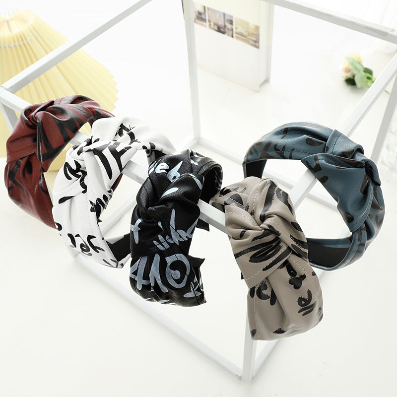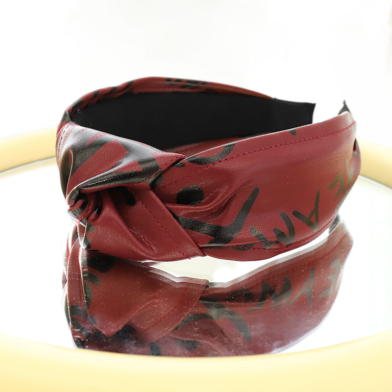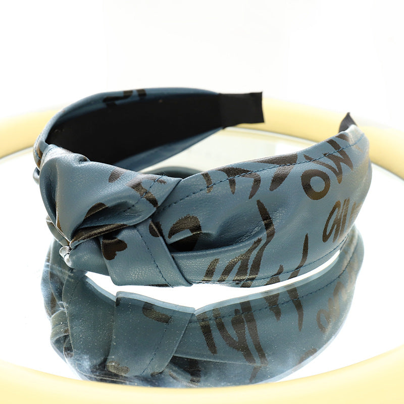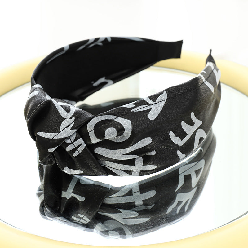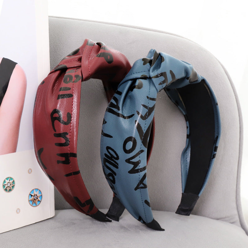 F558壓髮洗臉頭箍髮捆女韓國簡約打結寬邊頭窟時尚印字母皮革髮箍YC20210914