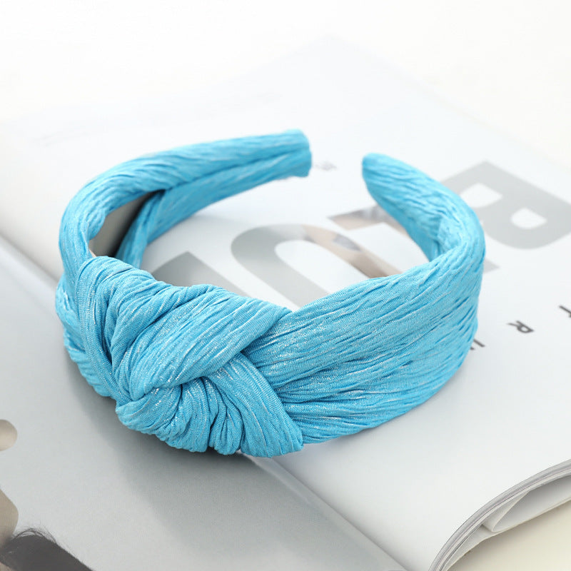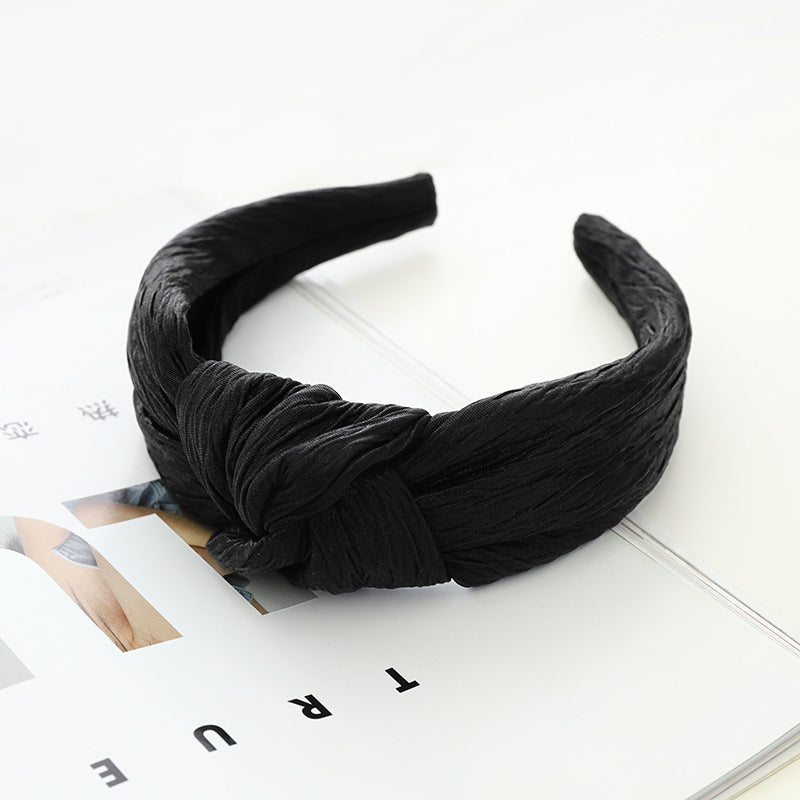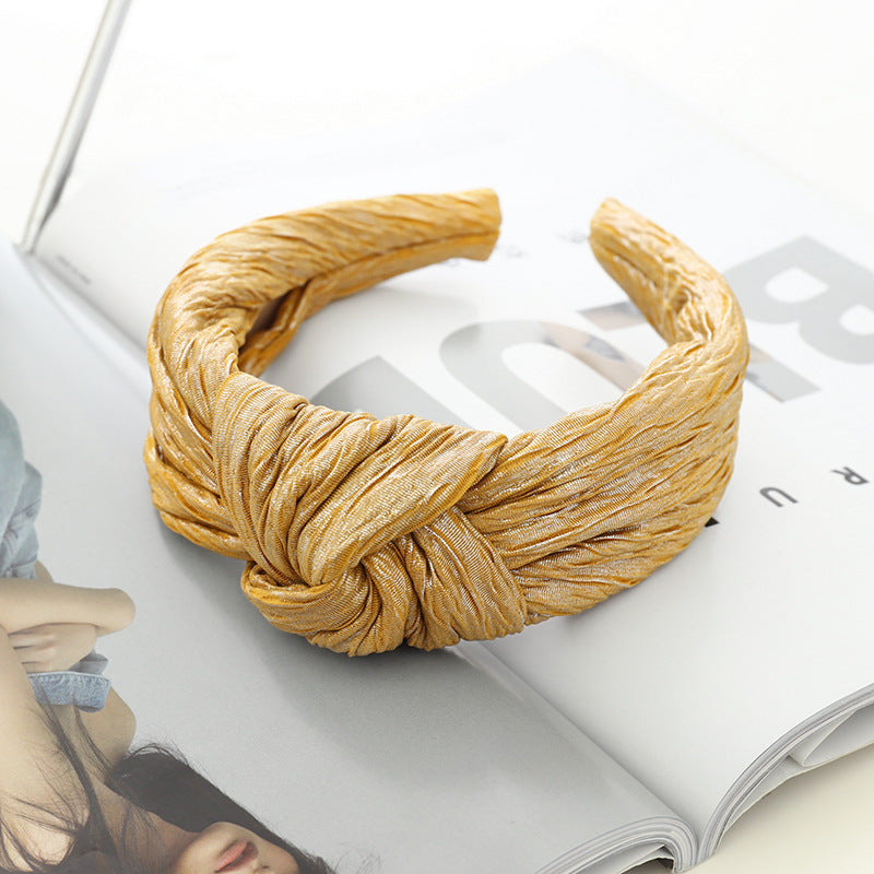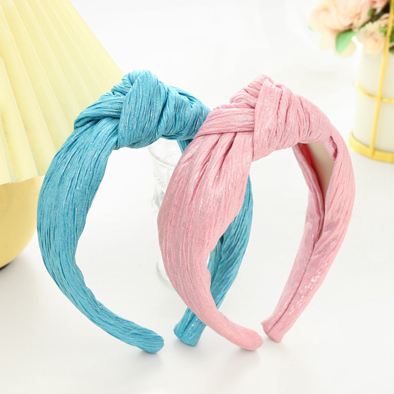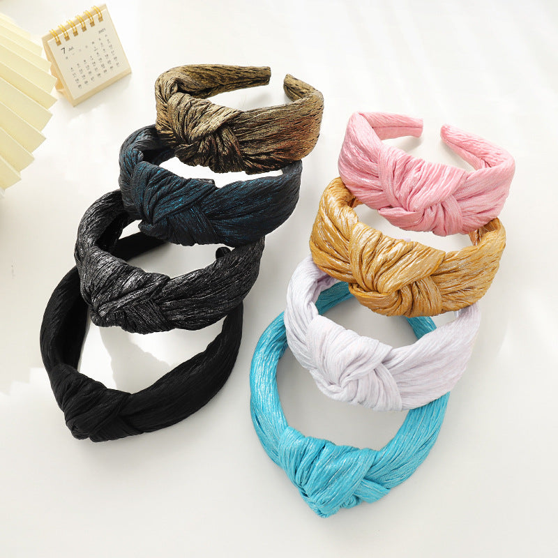 F567韓版氣質寬邊打結頭箍純色褶皺亮絲布藝頭飾髮卡簡約女士髮箍hh202107