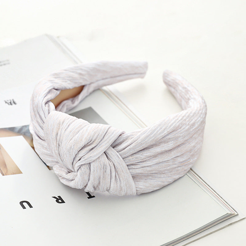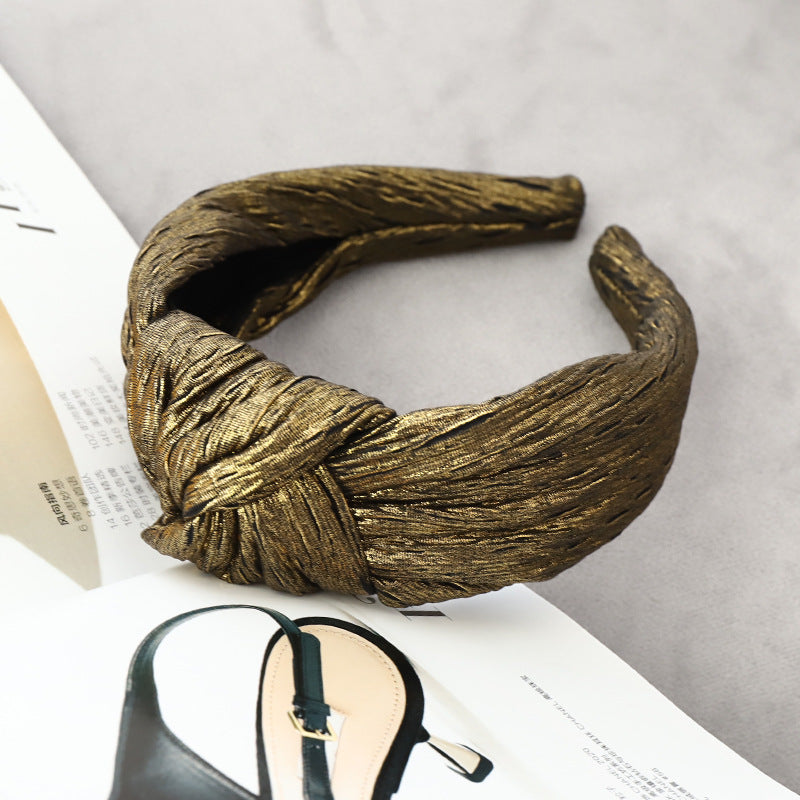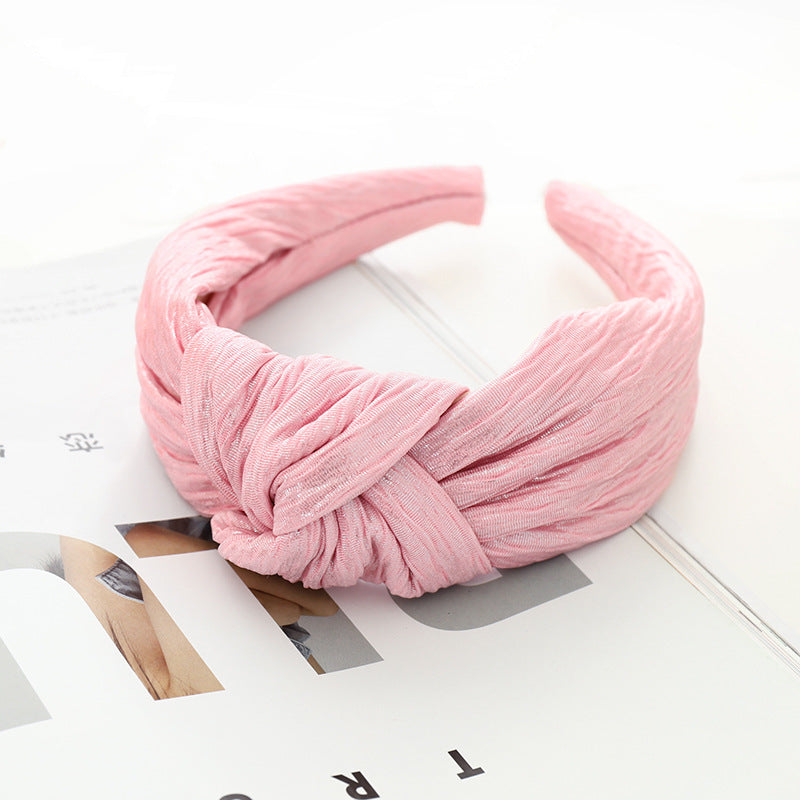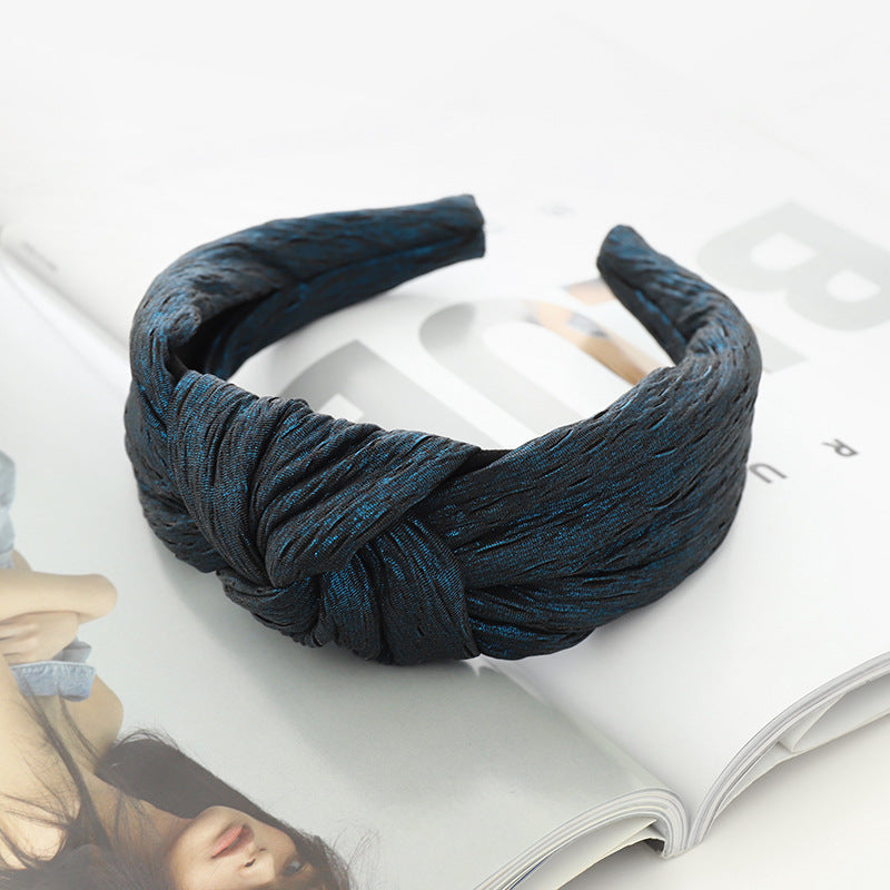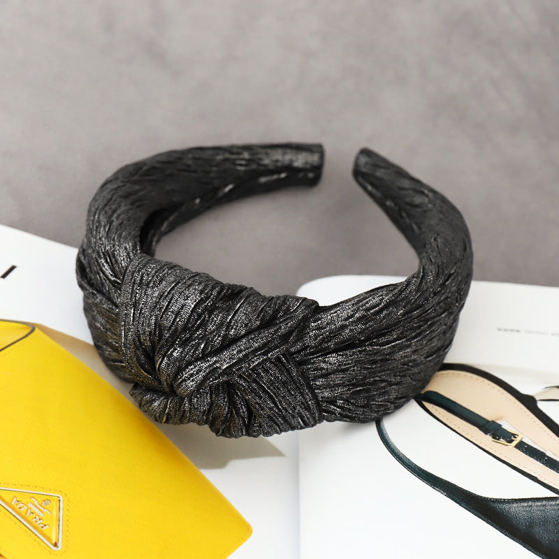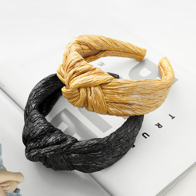 F567韓版氣質寬邊打結頭箍純色褶皺亮絲布藝頭飾髮卡簡約女士髮箍hh202107