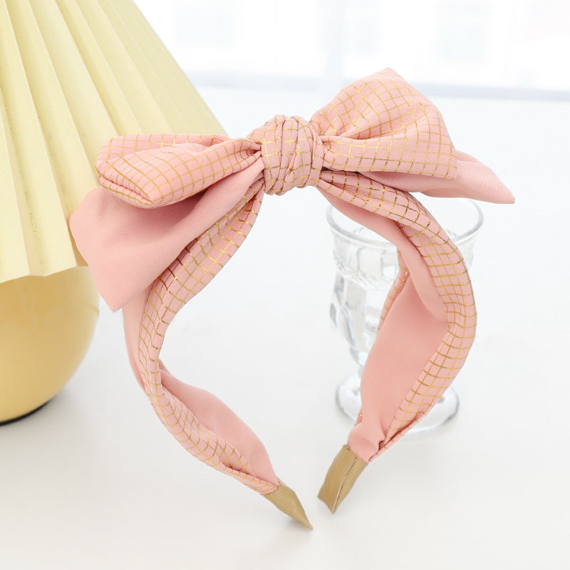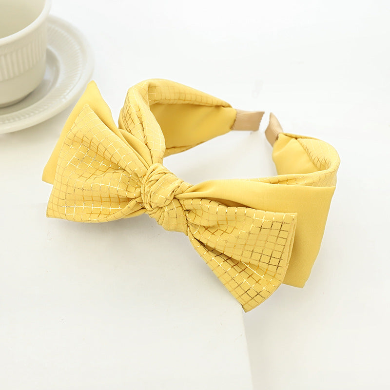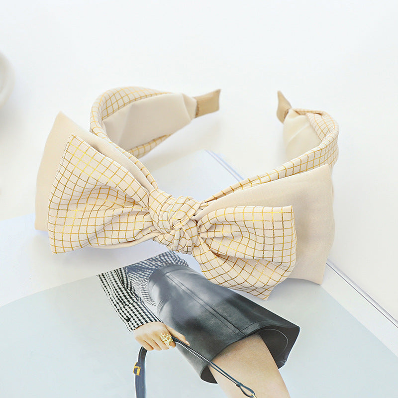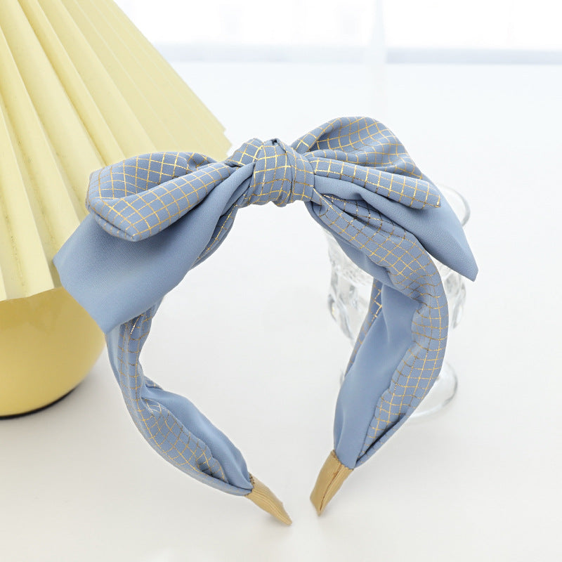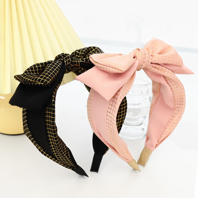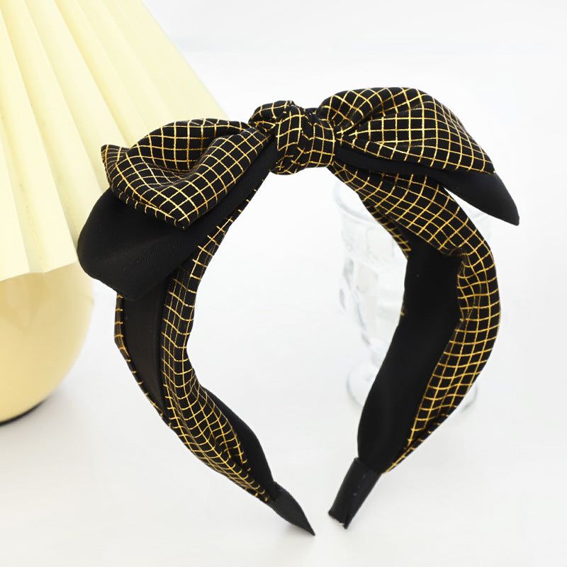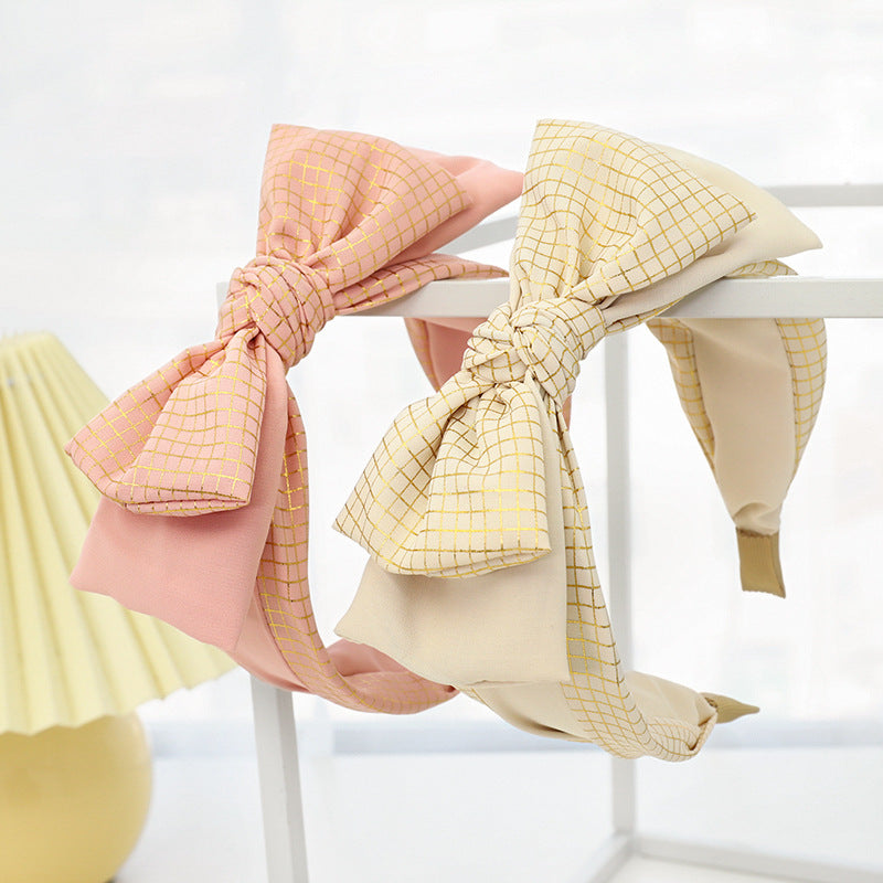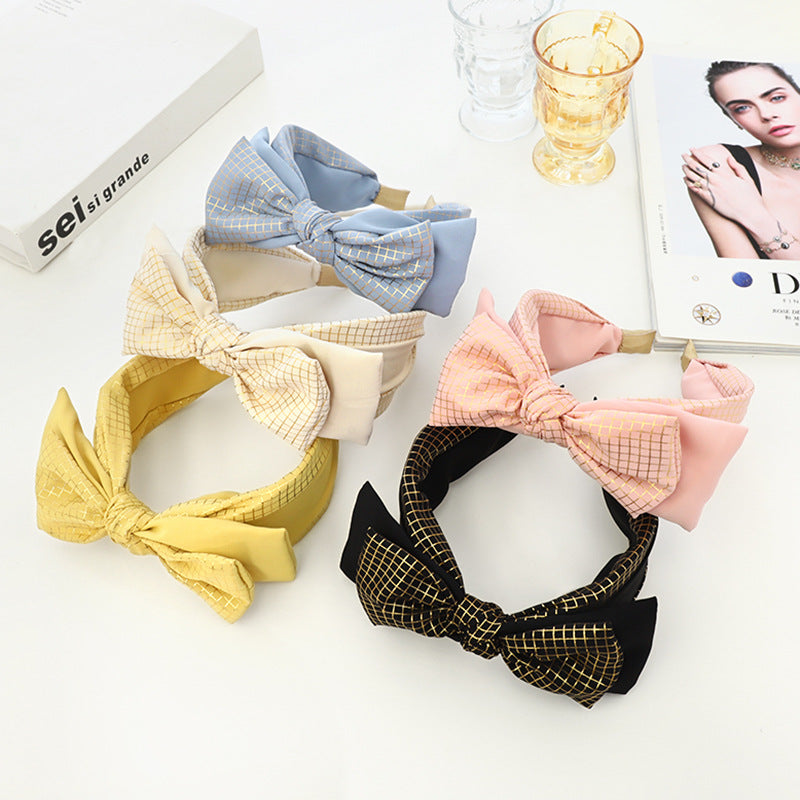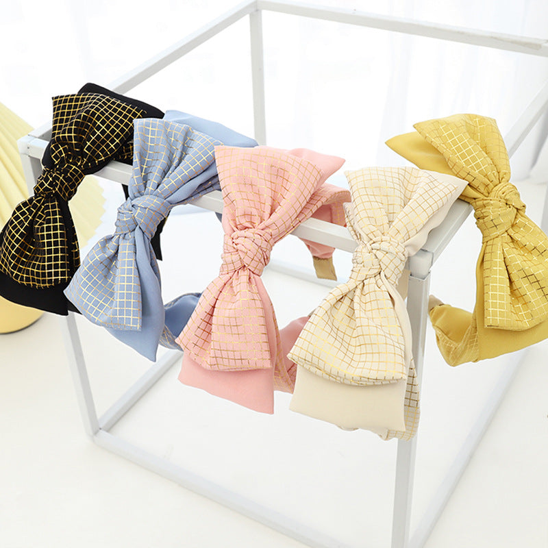 F571韓版新款蝴蝶結髮卡甜美寬邊燙金印花格紋布藝頭飾復古髮箍hh202107
