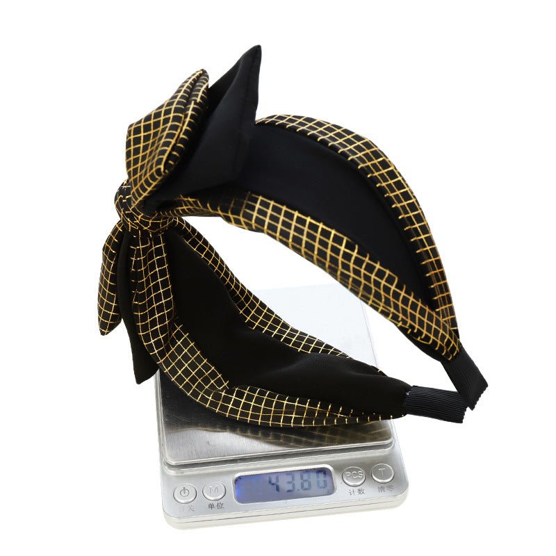 品名:F571韓版新款蝴蝶結髮卡甜美寬邊燙金印花格紋布藝頭飾復古髮箍hh202107