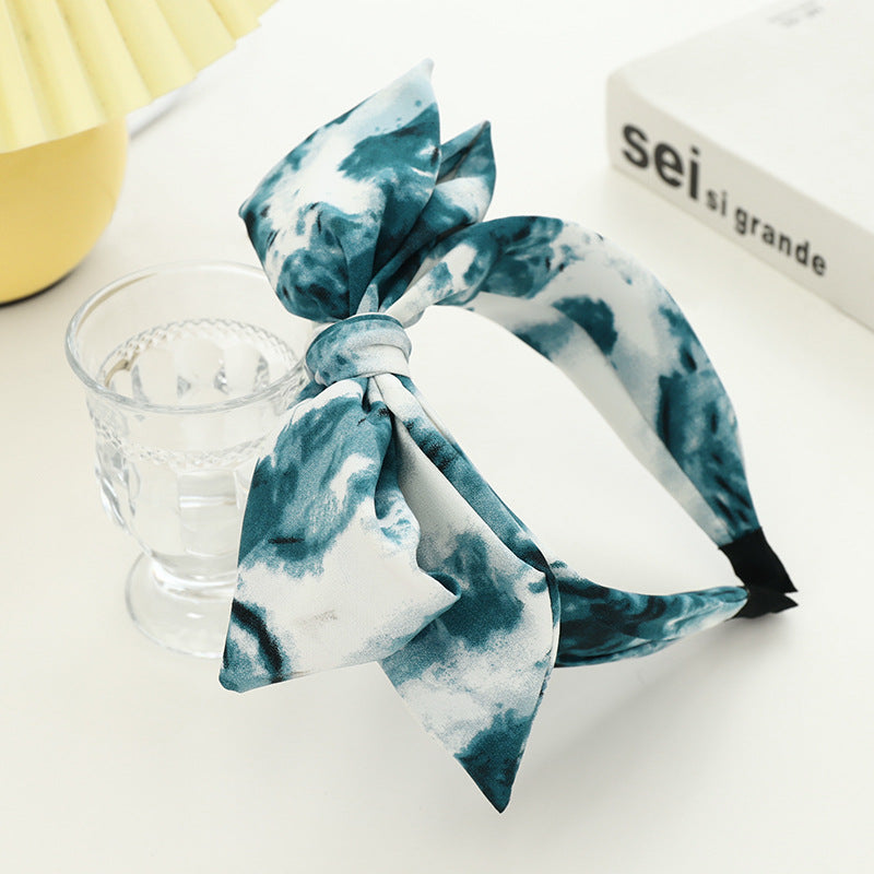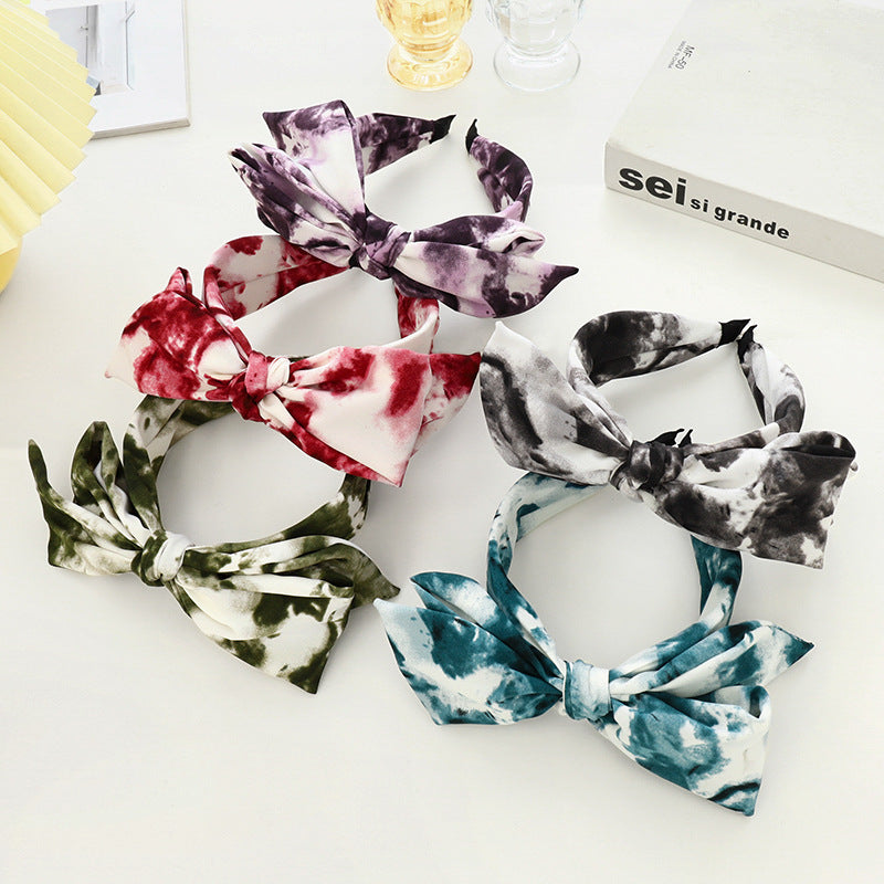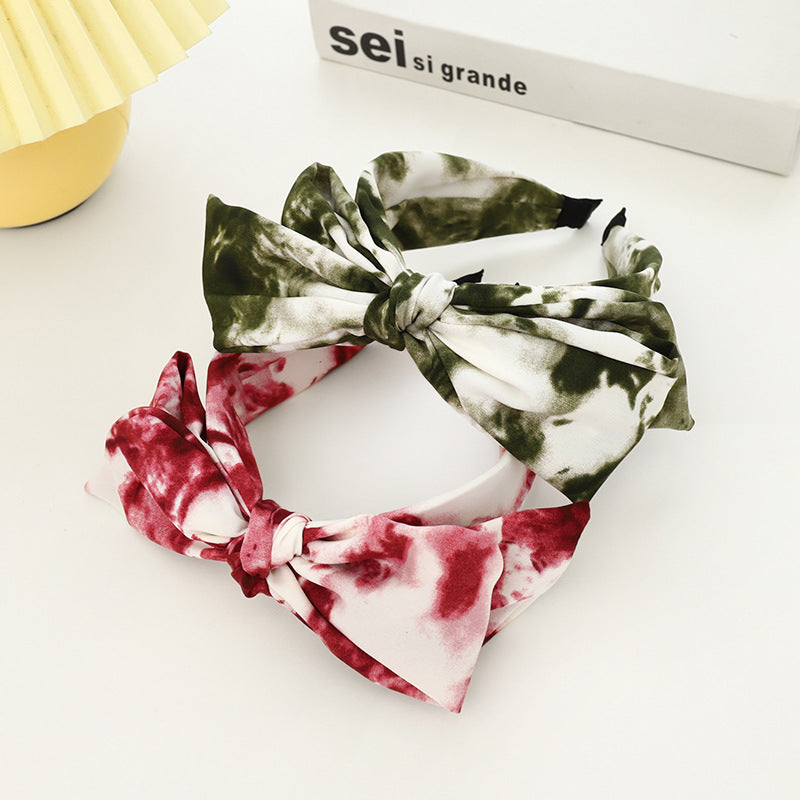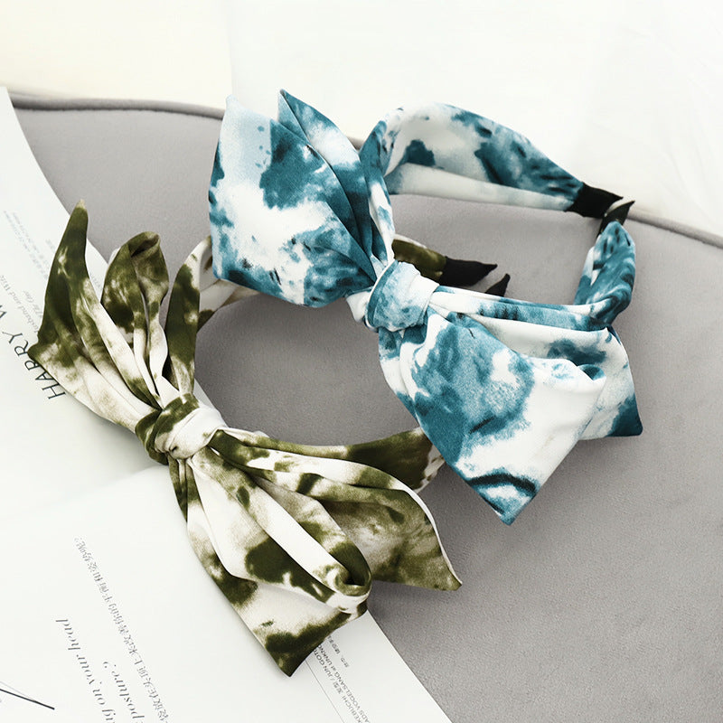 F585韓版網紅頭箍簡約寬邊壓髮成人髮飾新款紮染布藝蝴蝶結髮箍hh202107