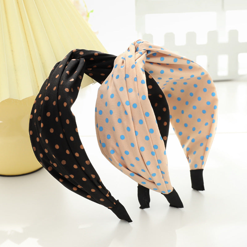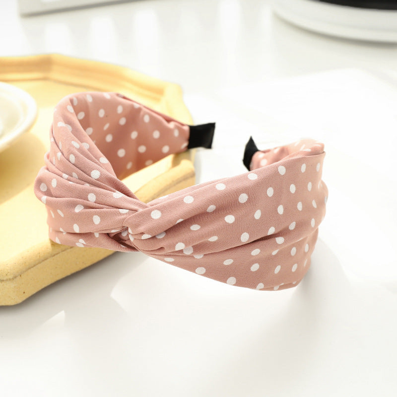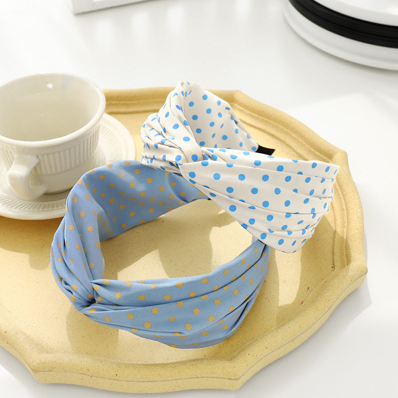 F587韓版夏季新款髮飾甜美氣質寬邊壓髮頭箍可愛波點布藝交叉髮箍hh202107