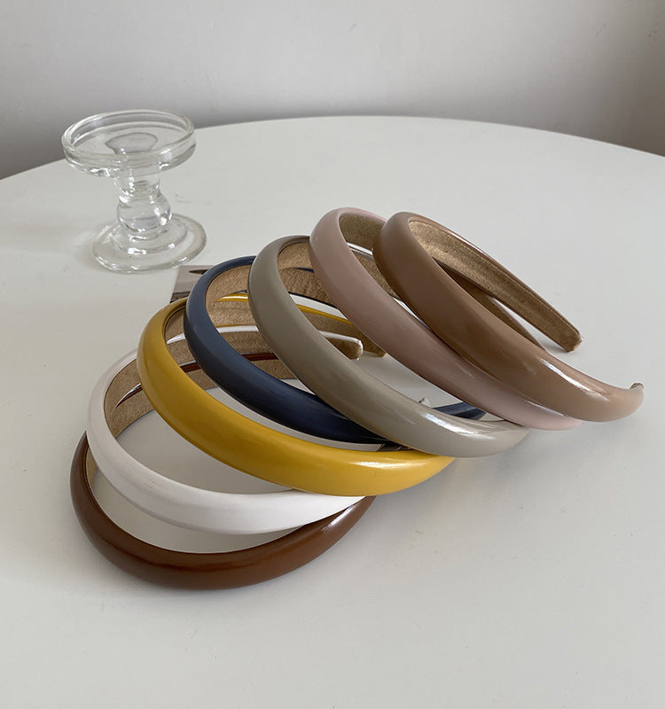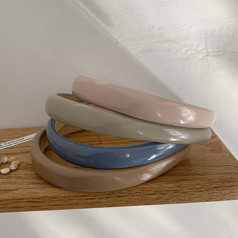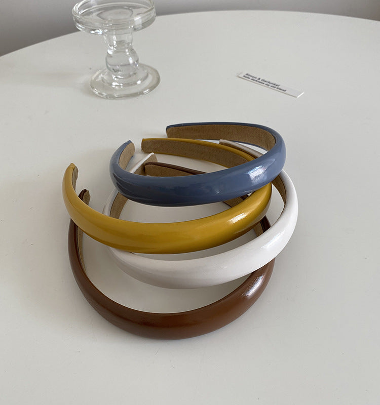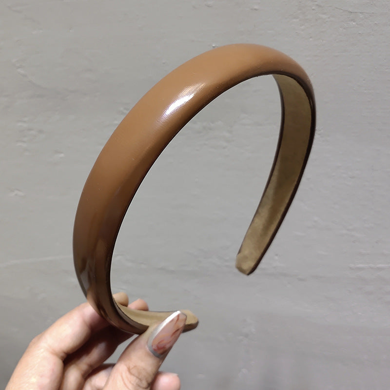 HX-013韓式髮箍純色復古氣質亮面pu皮質髮箍韓國簡約百搭外出頭箍潮HX20210820